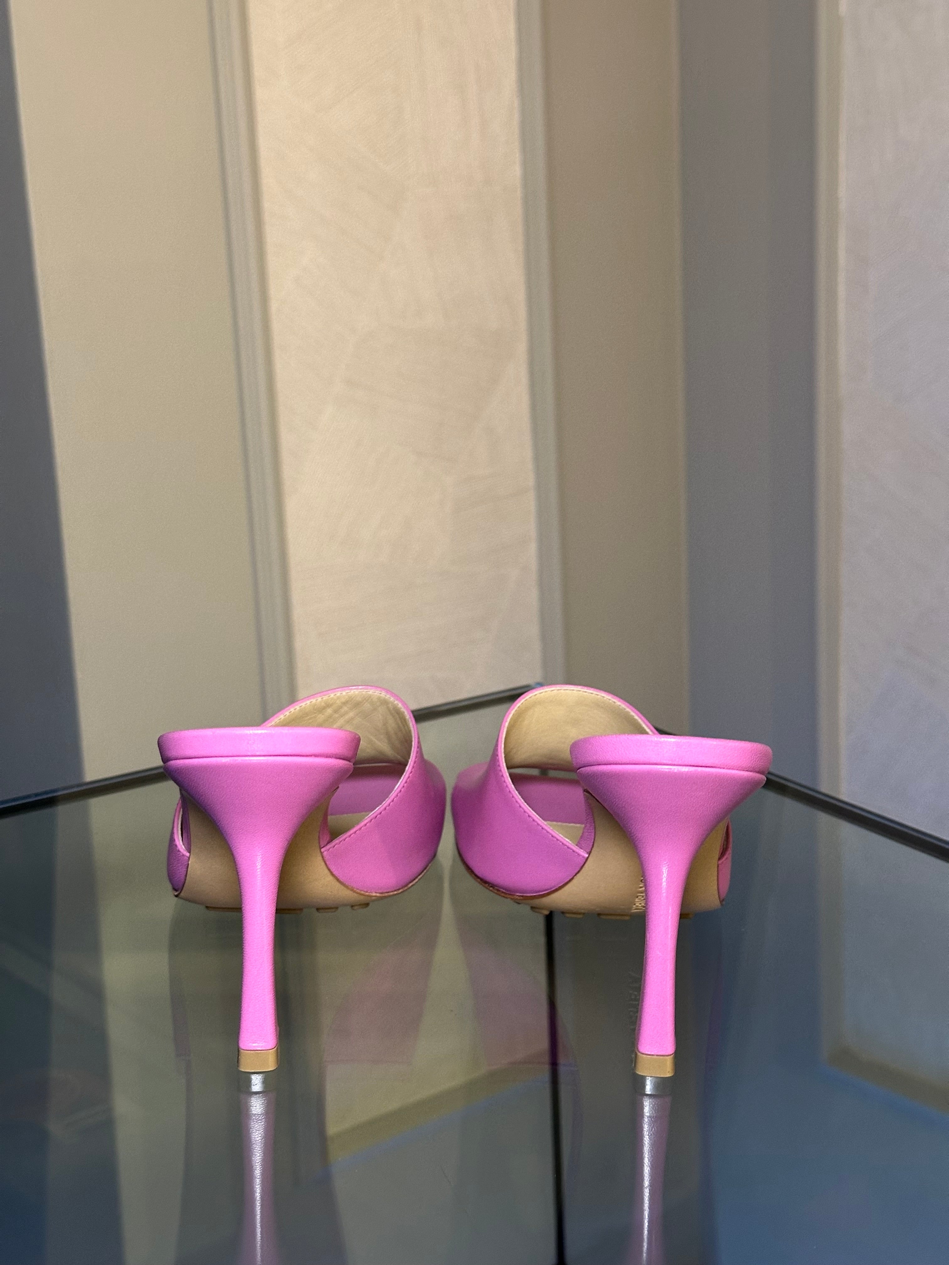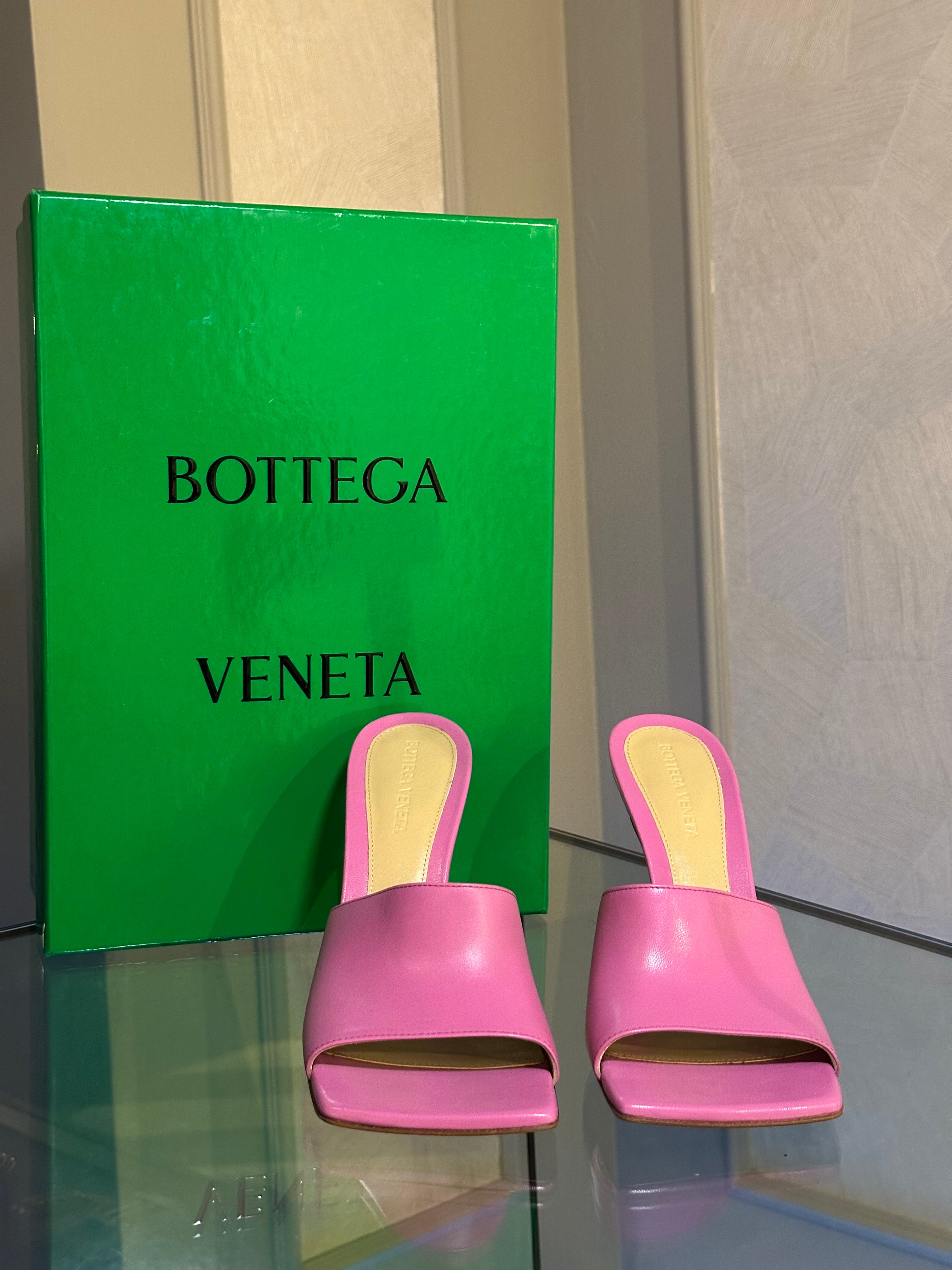 These stunning Bottega Veneta heels are crafted from high-quality pink leather, featuring the brand’s signature sleek and modern silhouette.