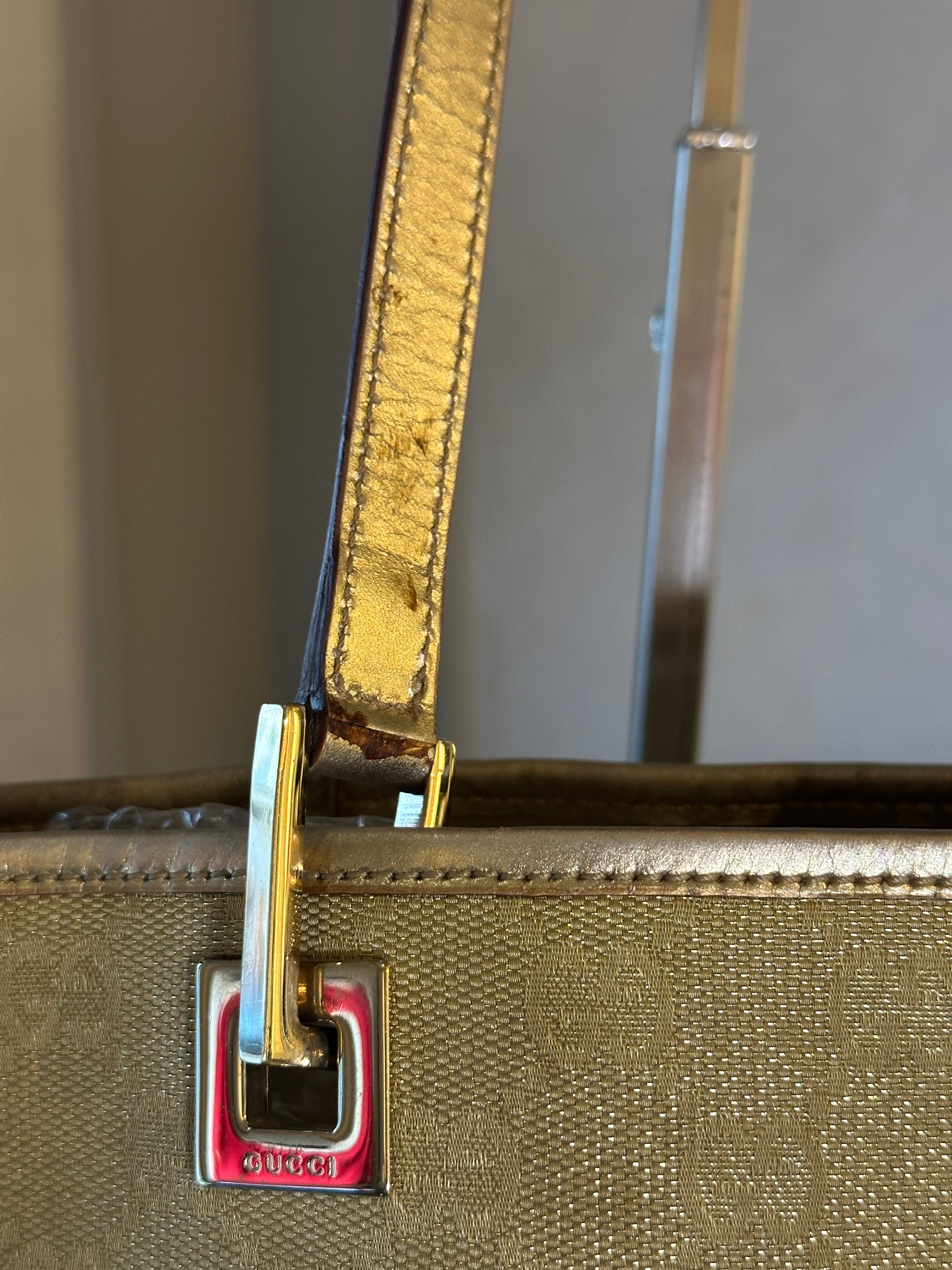 At Fashionfouvintage, we take pride in offering authentic and iconic designer pieces like this Gucci metallic bag. Please note that this pre-owned item is used and may have minor imperfections. We do our best to list any noticeable flaws, but it may show signs of wear that a new item would not. Refer to the photos for more details on the item's condition. Items are priced according to their condition.