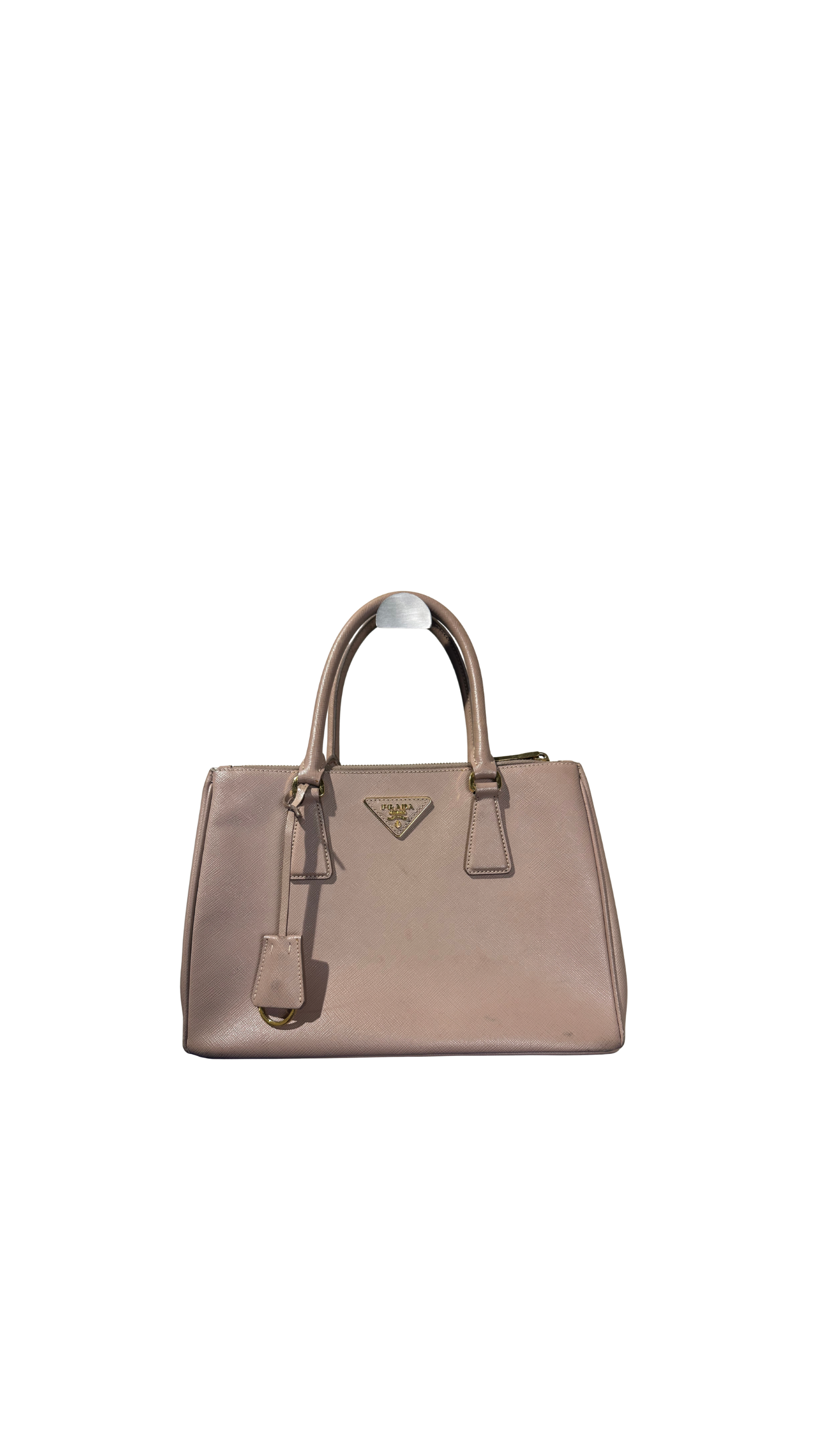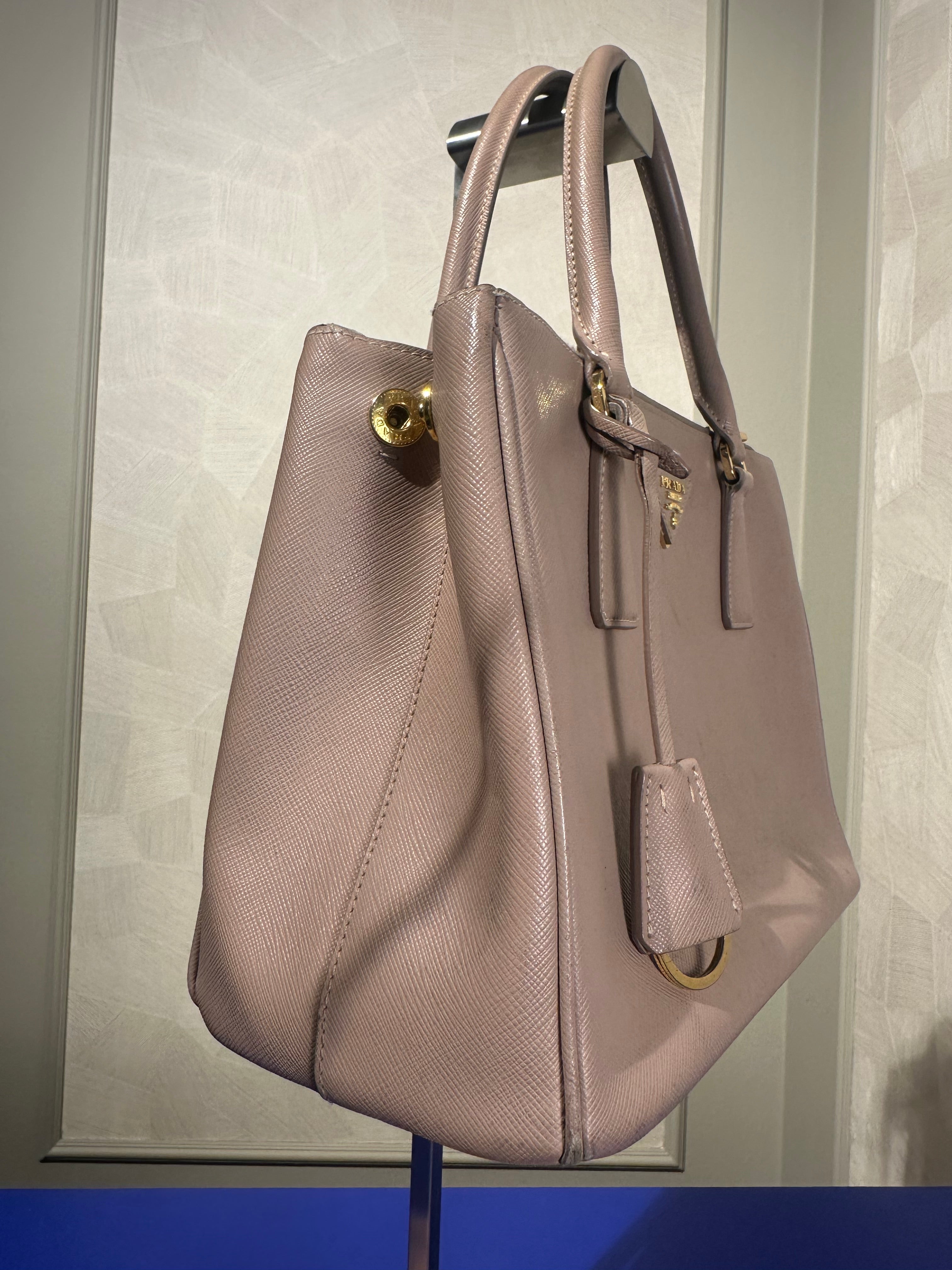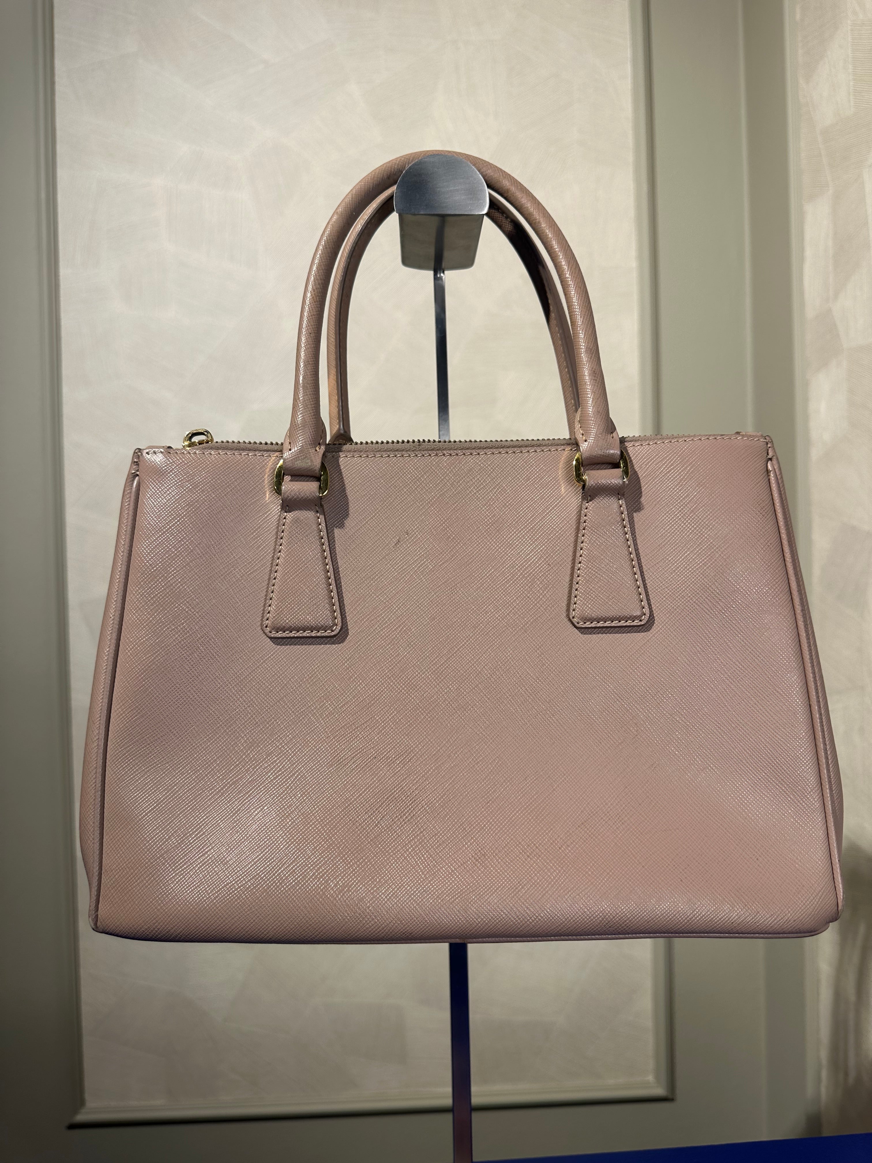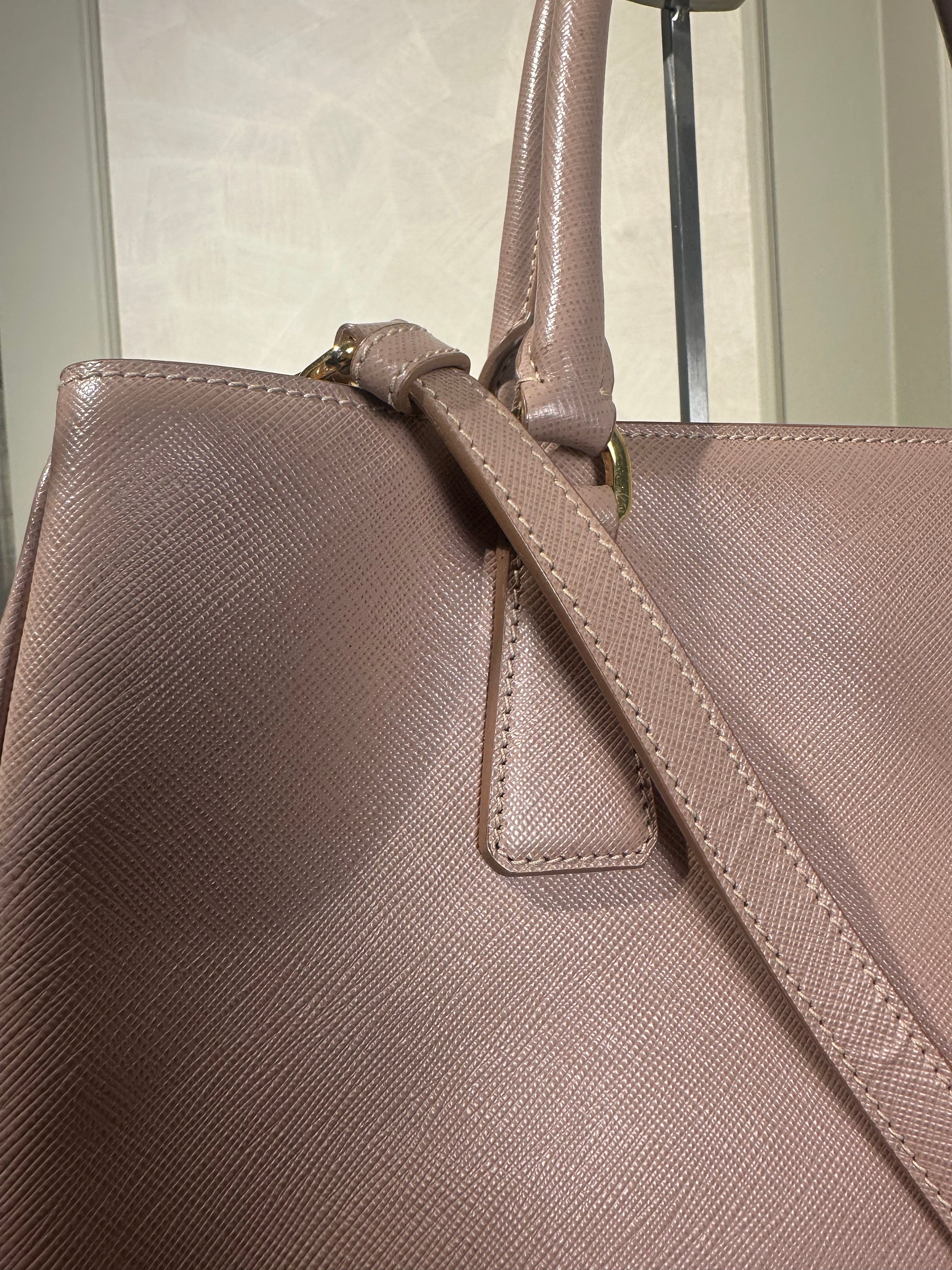 Prada Galleria Bag Dusty Pink Saffiano Leather Tote Strap Top Handles Structured Logo Full Set