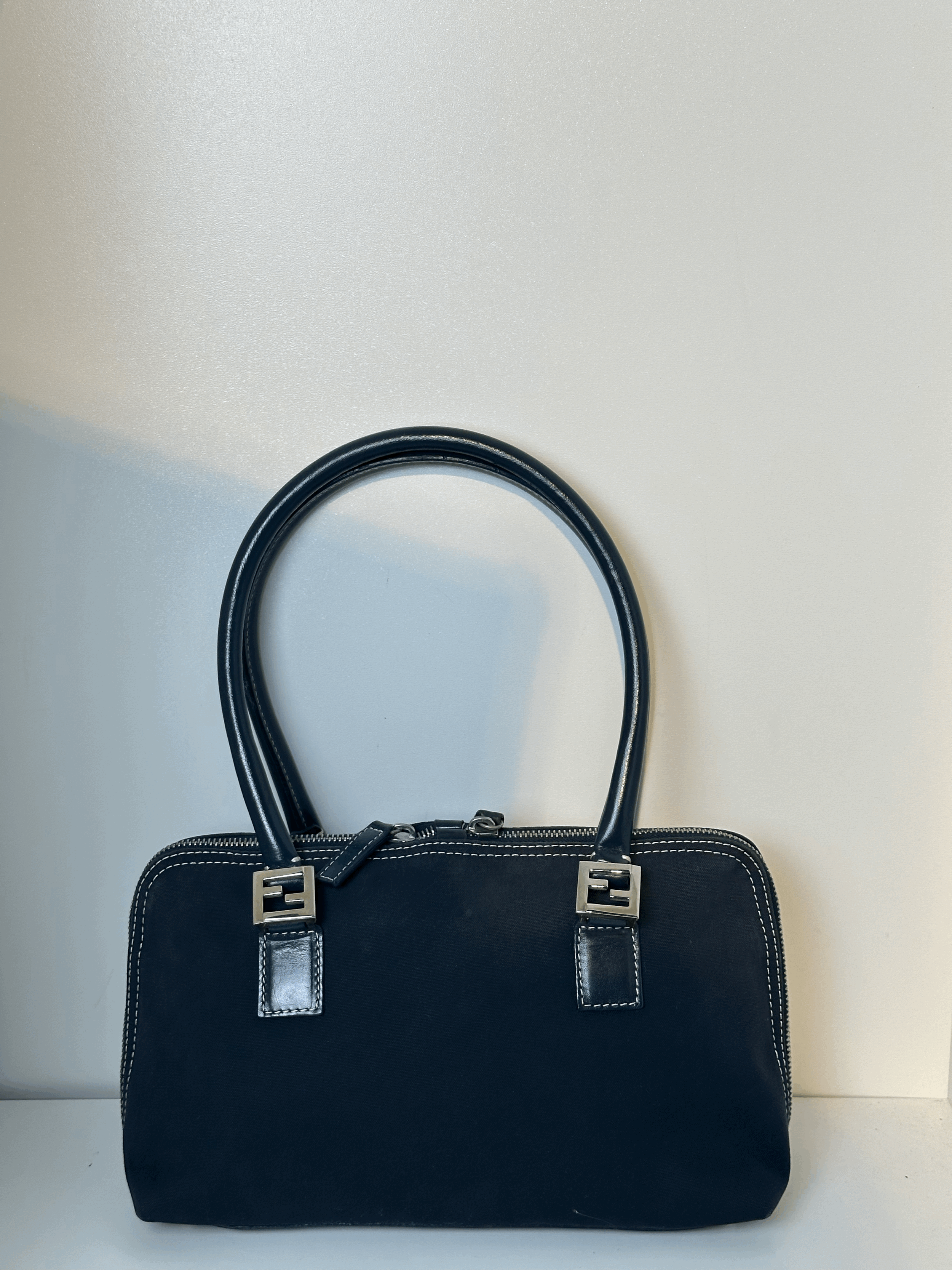 Fendi Shoulder Bag in Navy Canvas and Leather with Silver Hardware