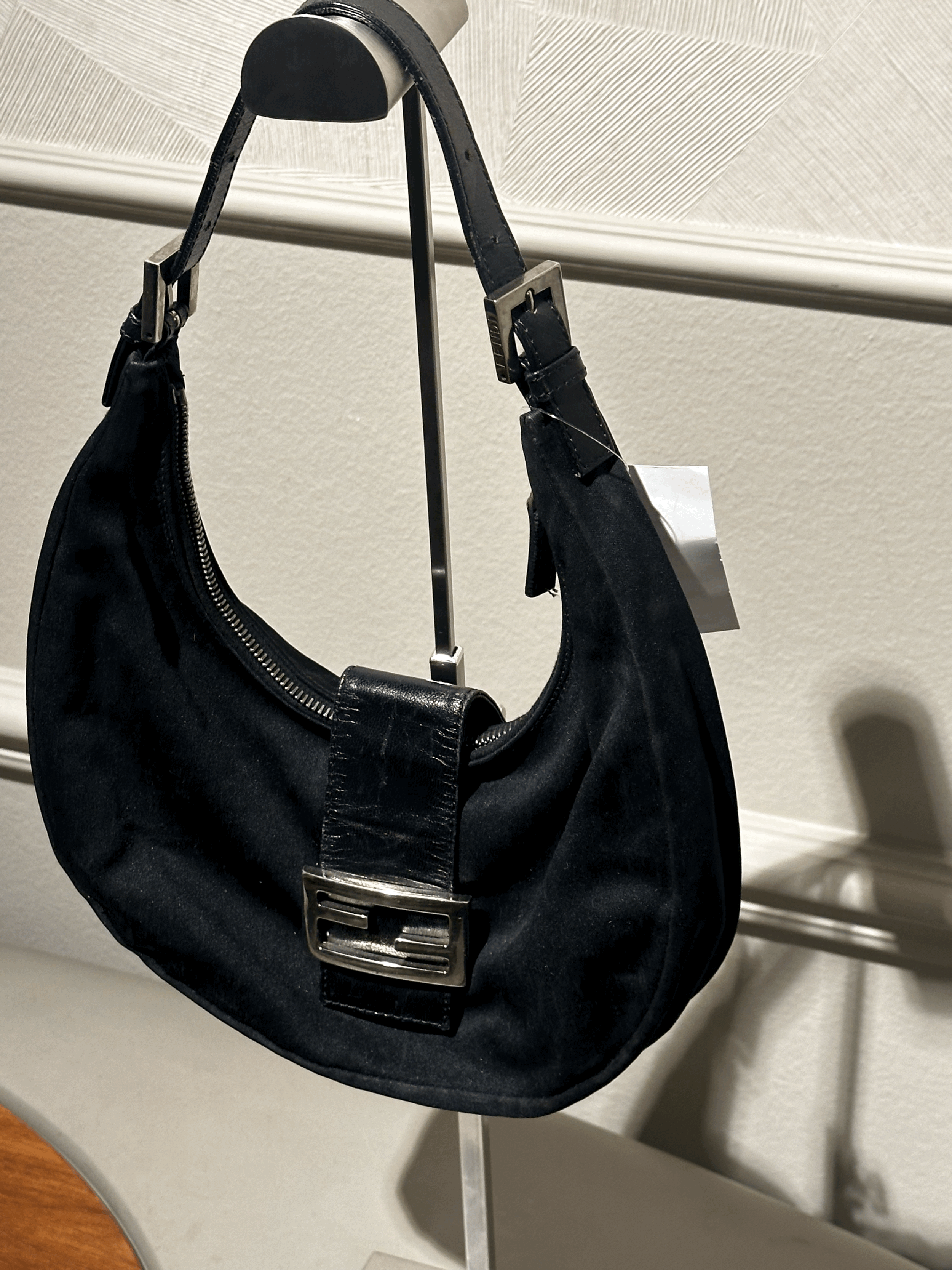 Fendi "Croissant" Nylon Black Shoulder Bag