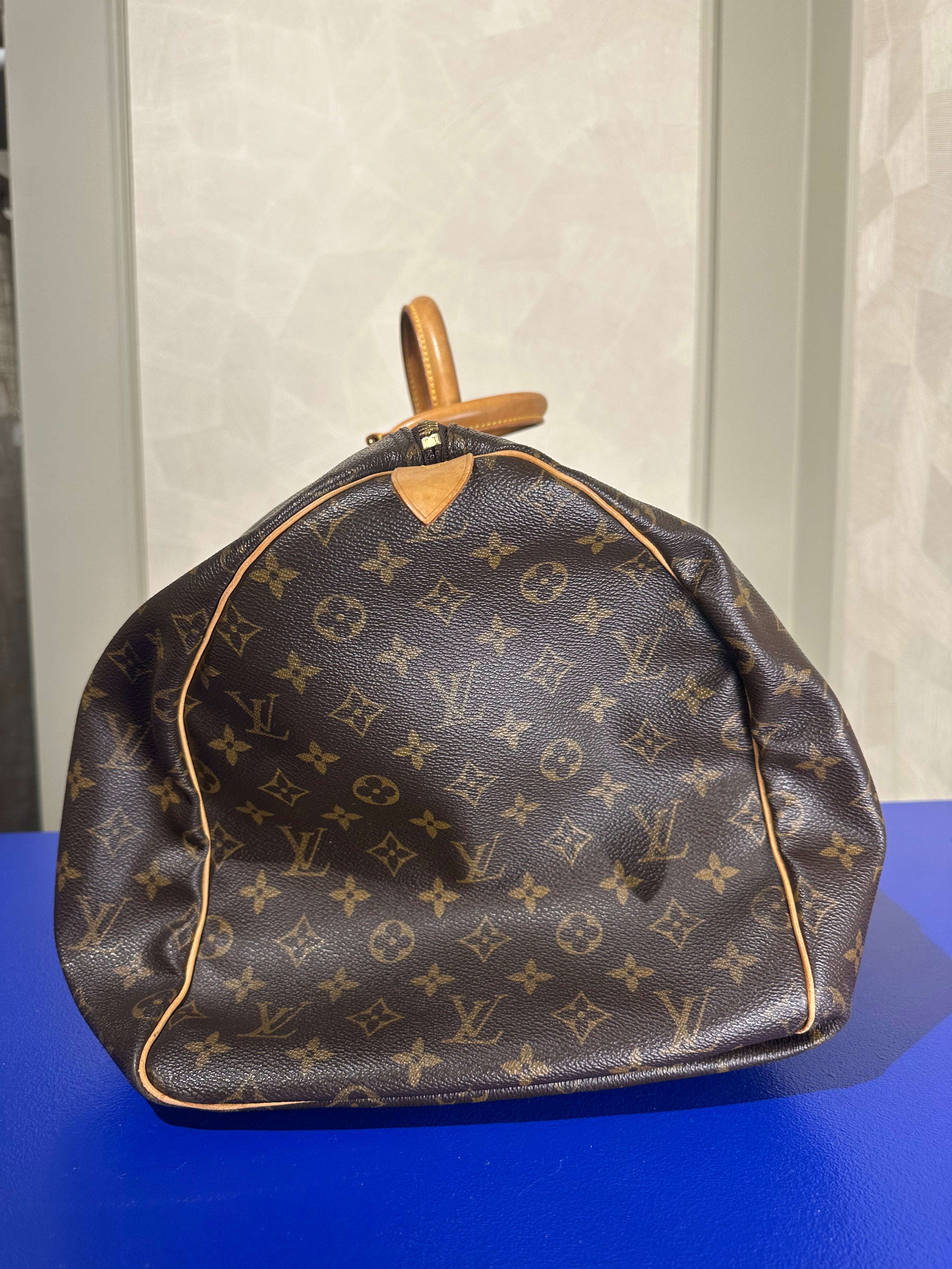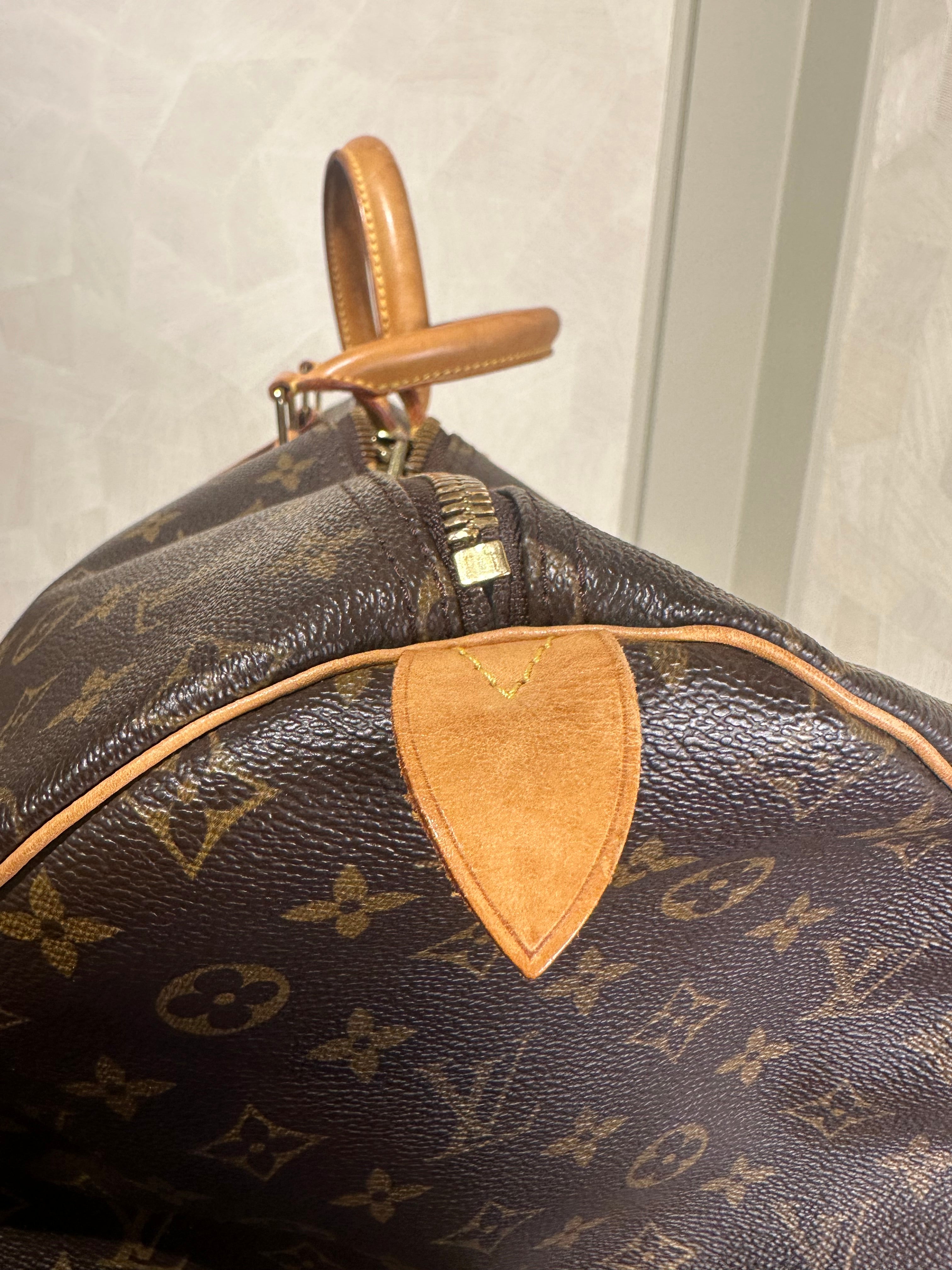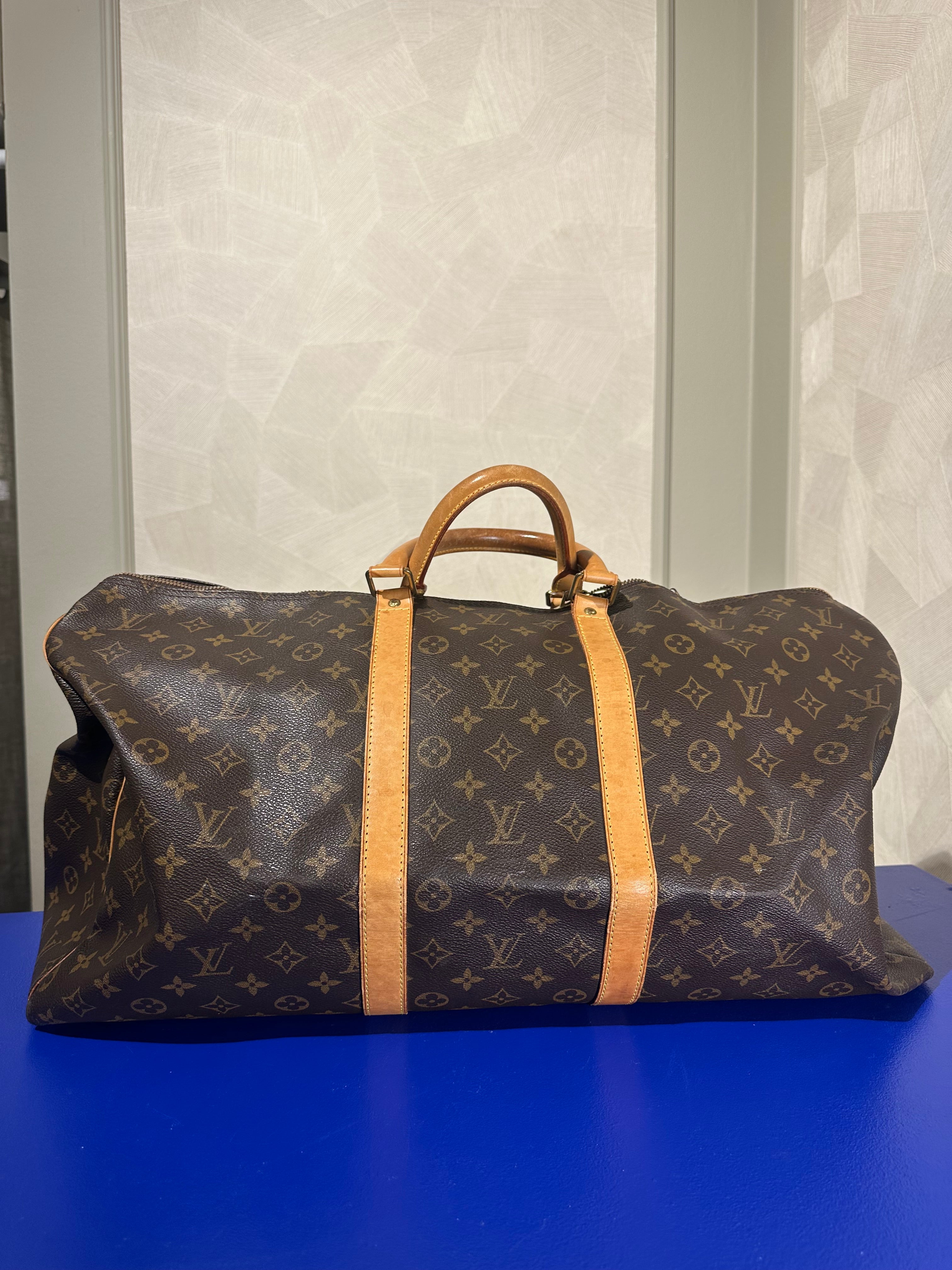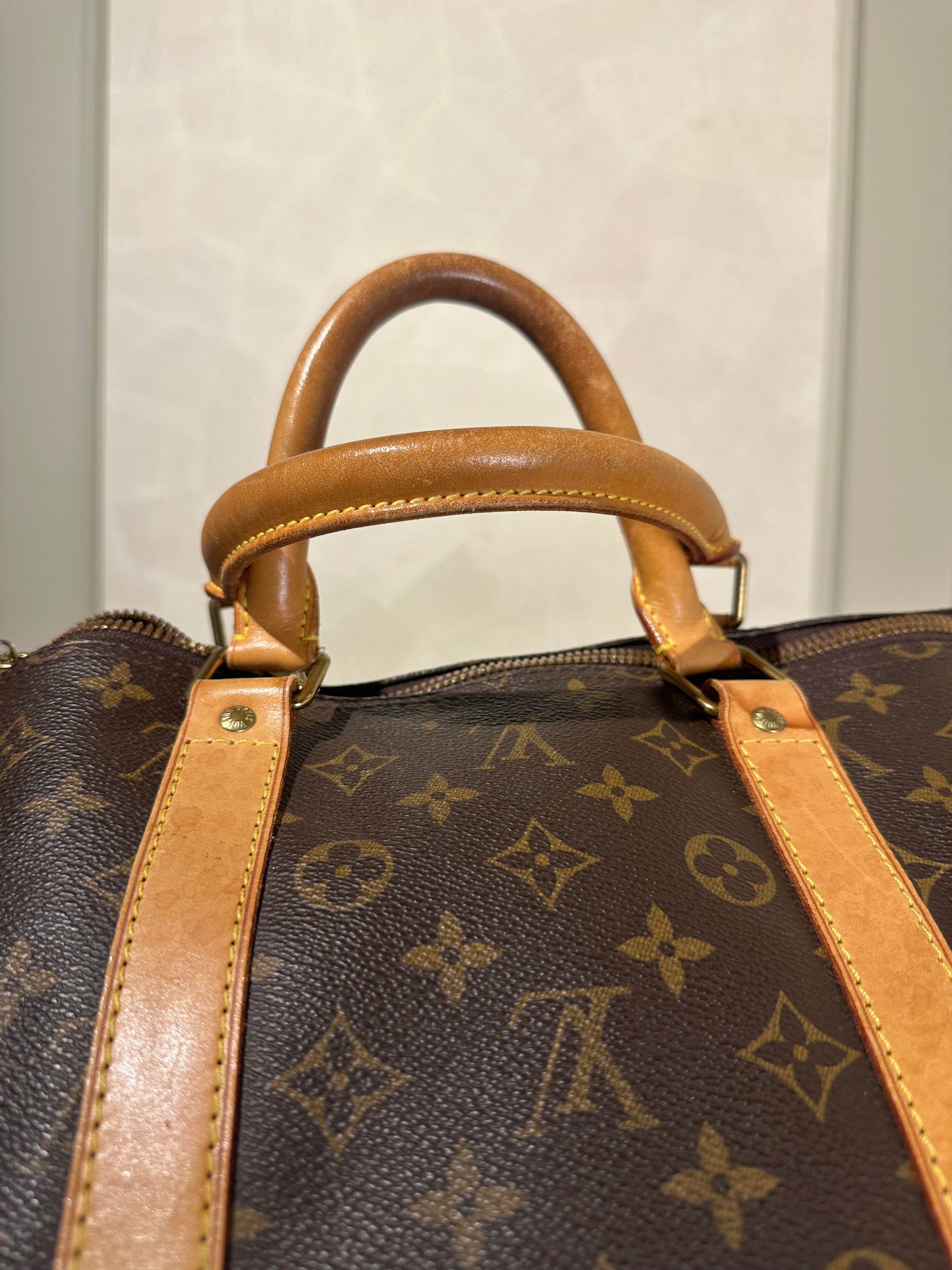 • Louis Vuitton Keepall 55 Bag Vintage Monogram Classic Style 48hr weekender duffle bag brown leather handles