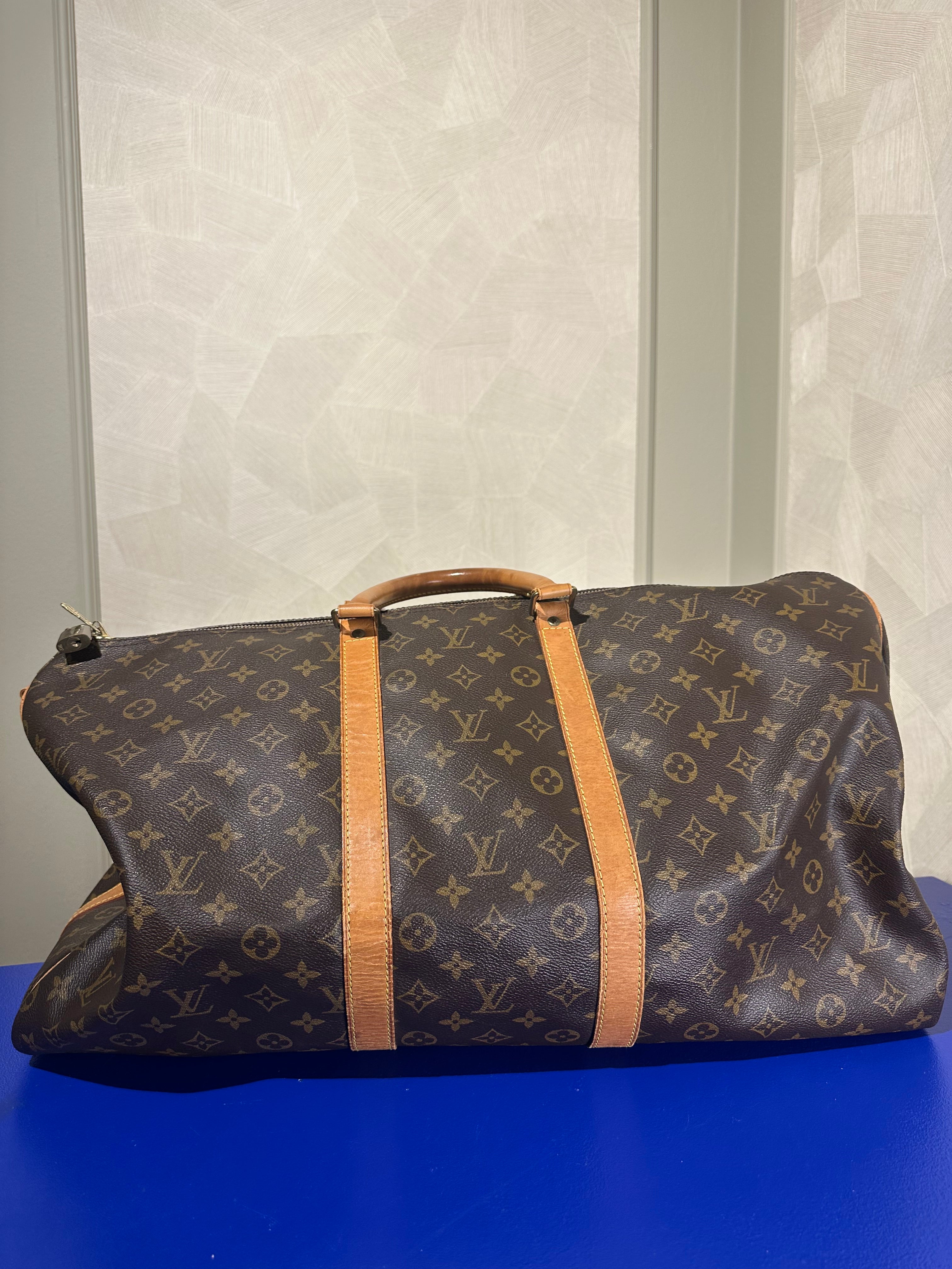 • Louis Vuitton Keepall 55 Bag Vintage Monogram Classic Style 48hr weekender duffle bag brown leather handles
