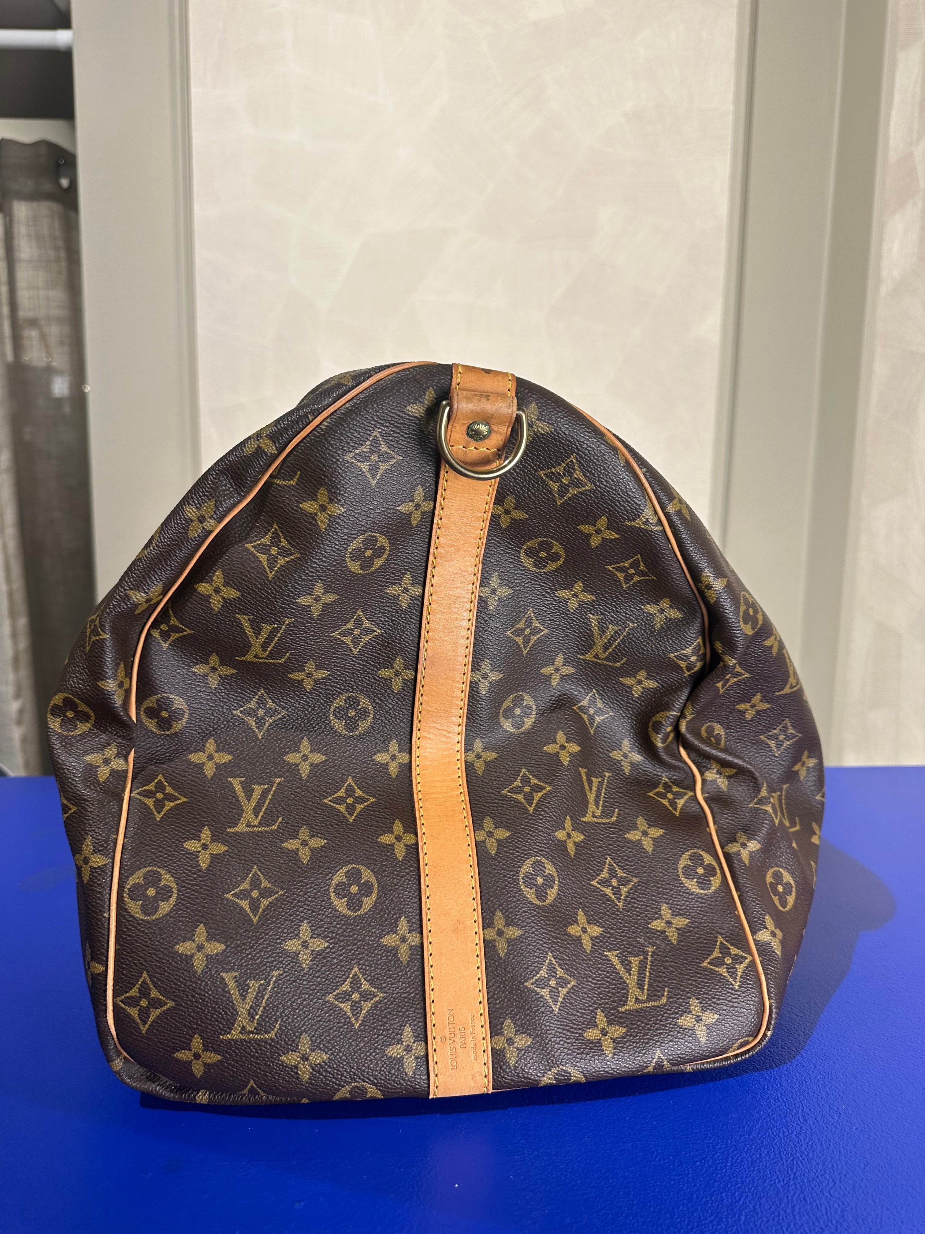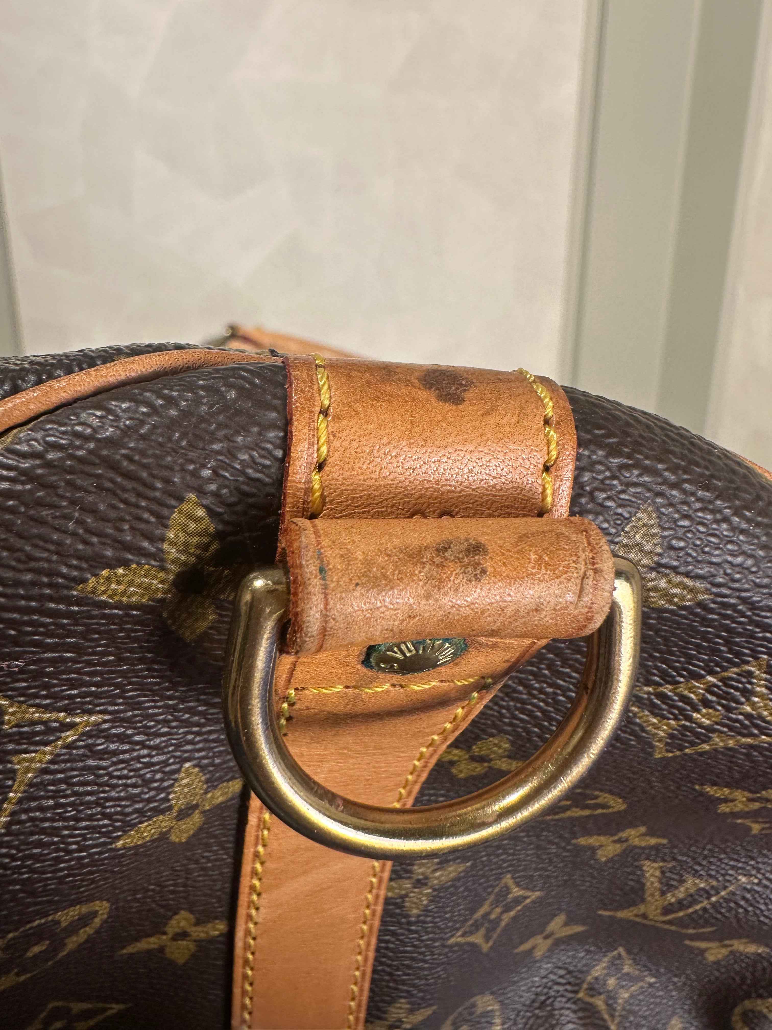 • Louis Vuitton Keepall 60 Bag Vintage Monogram Classic Style 48hr weekender duffle bag brown leather handles