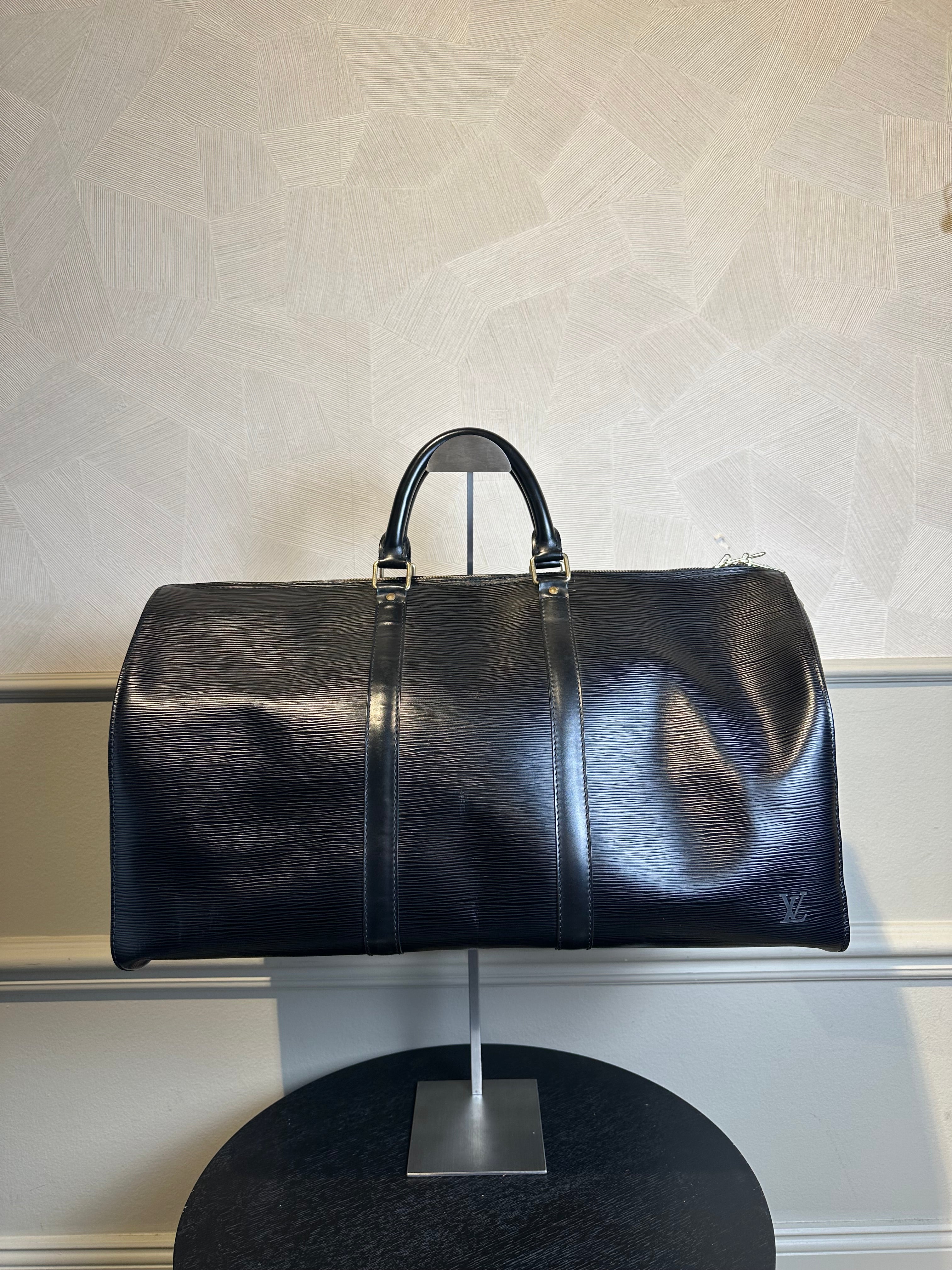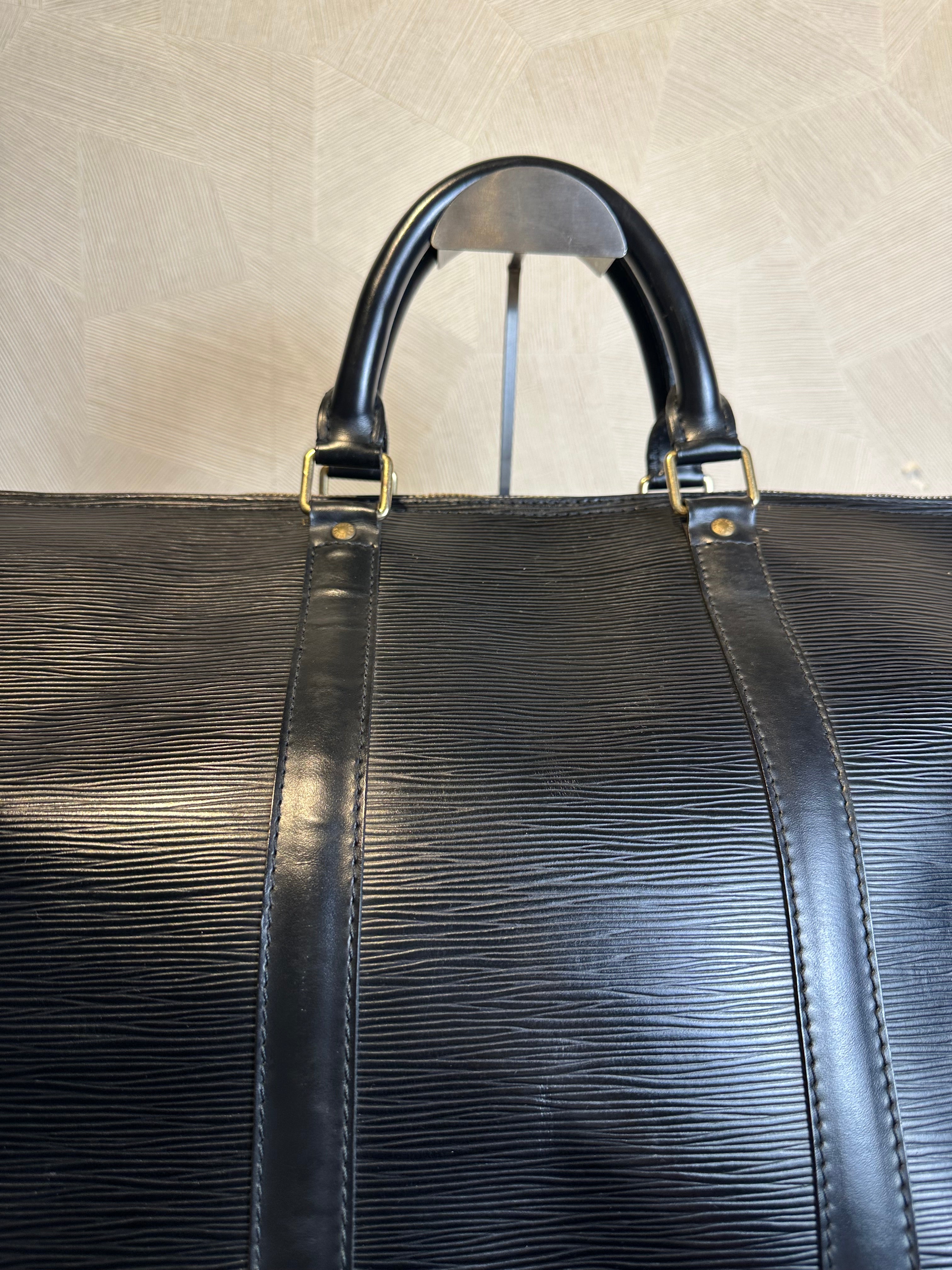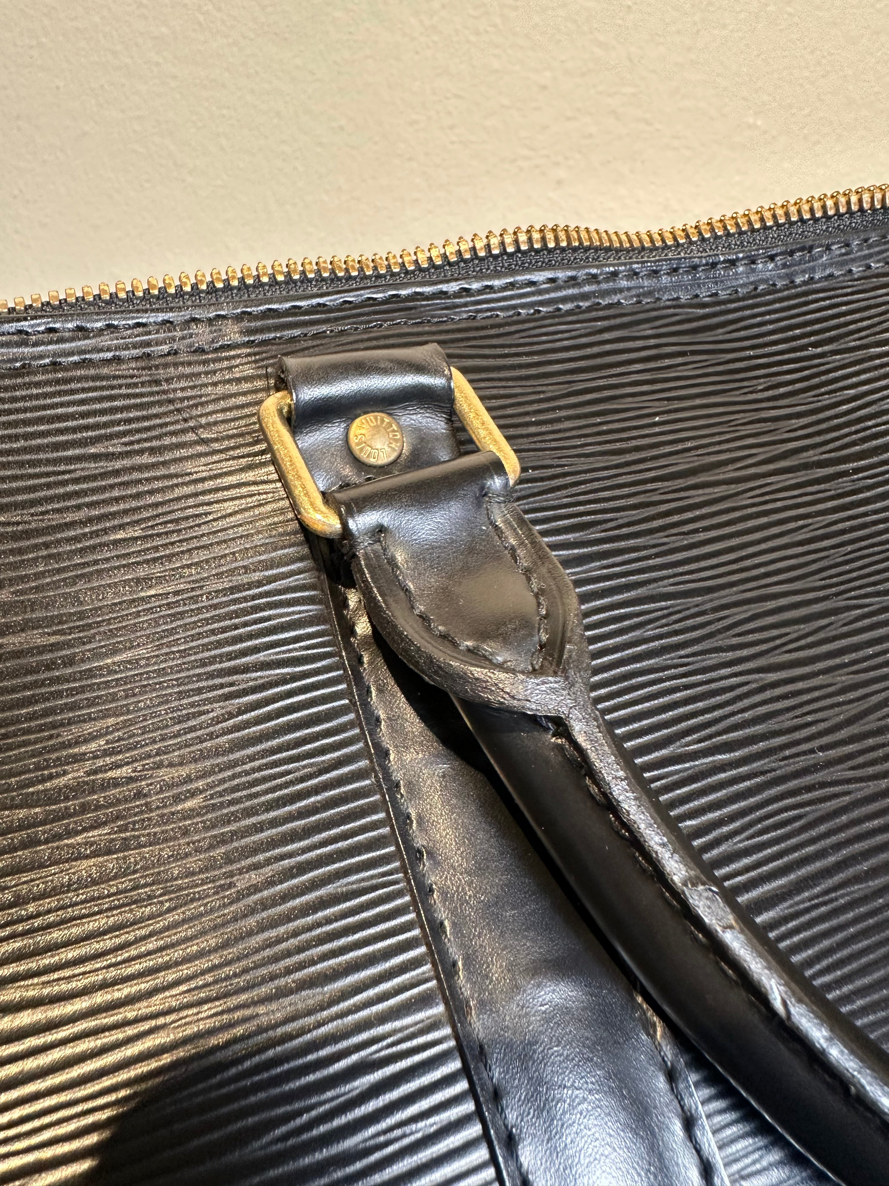 • Louis Vuitton Keepall Epi Leather Black Holdall weekender 43hr bag vintage unique LV monogram detail monochrome