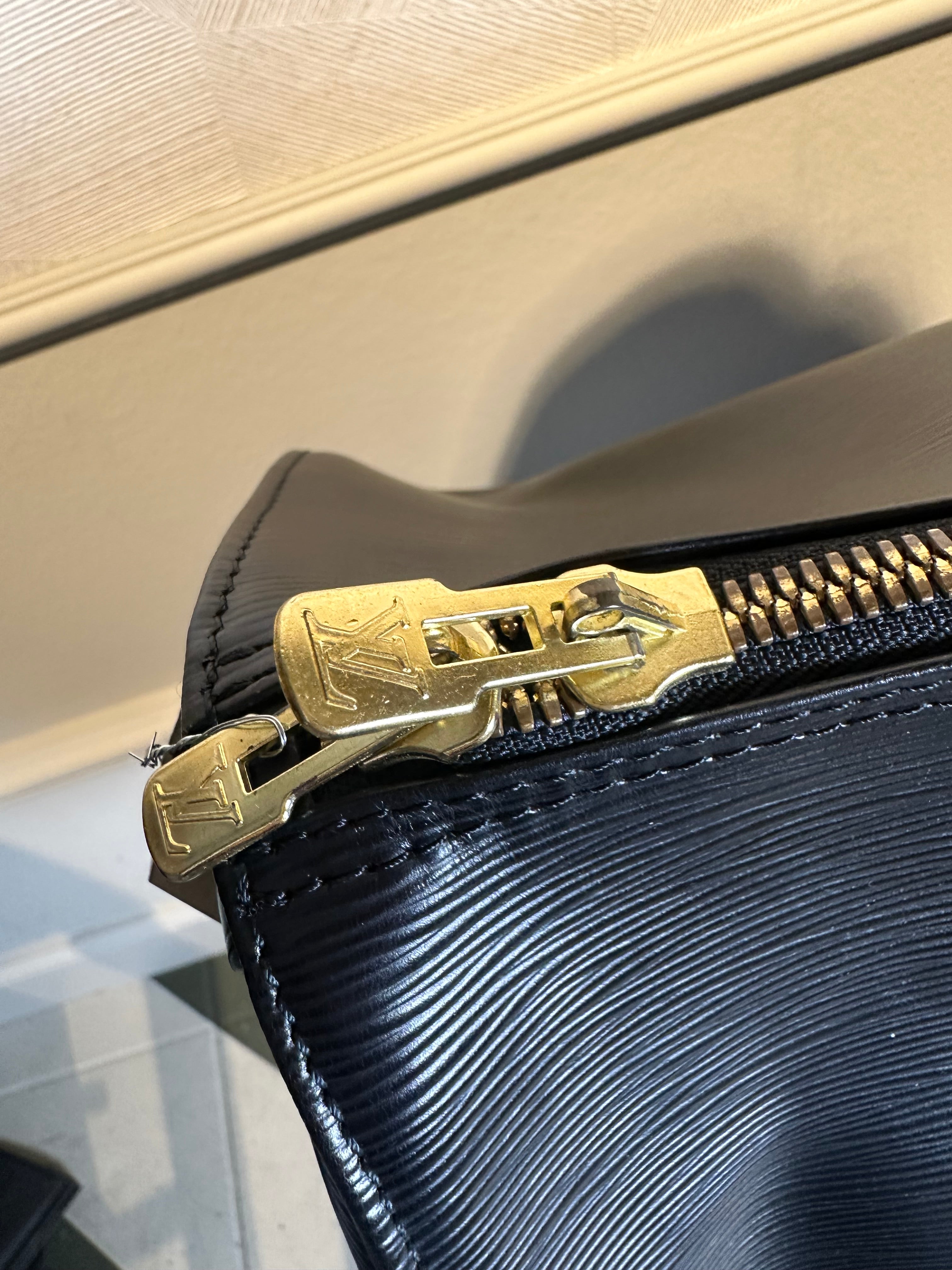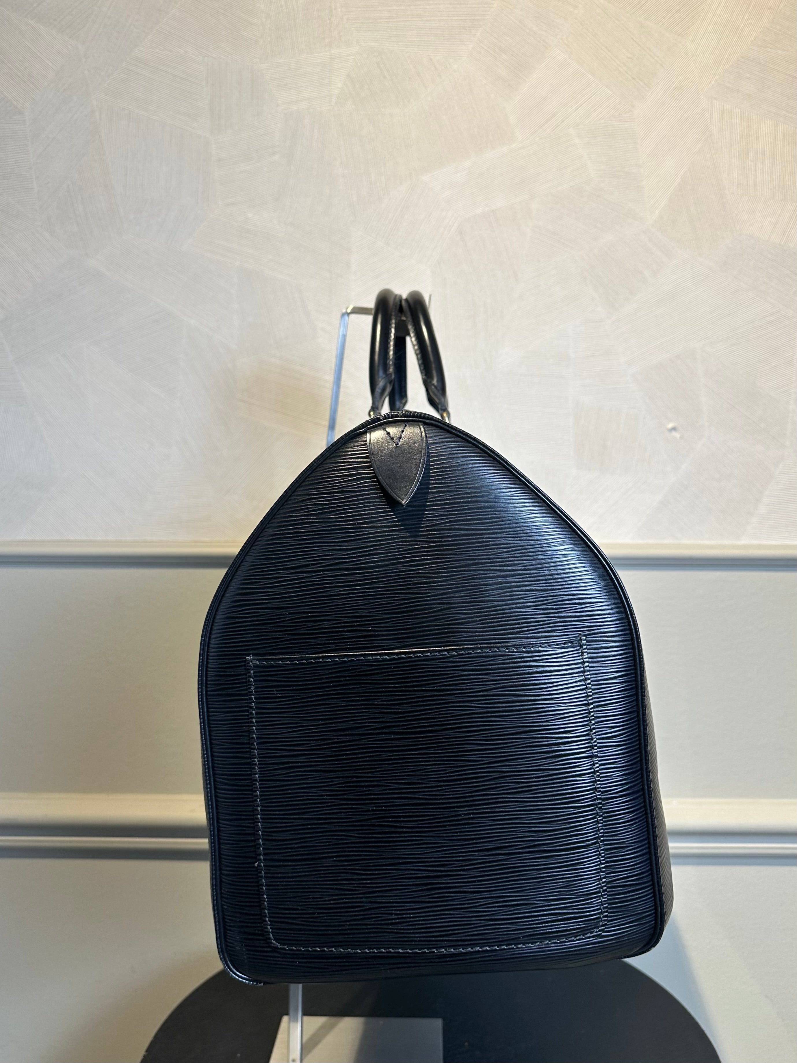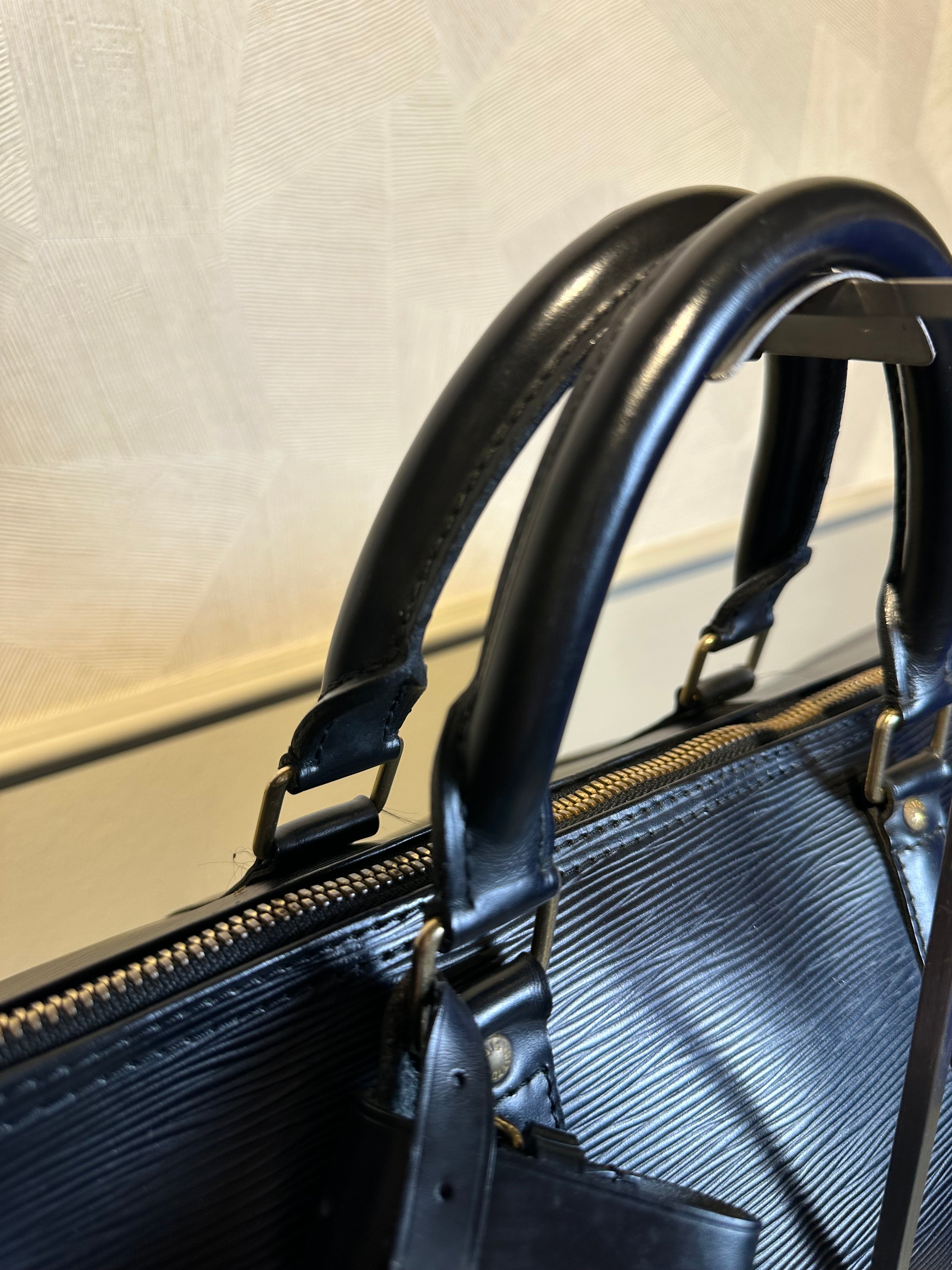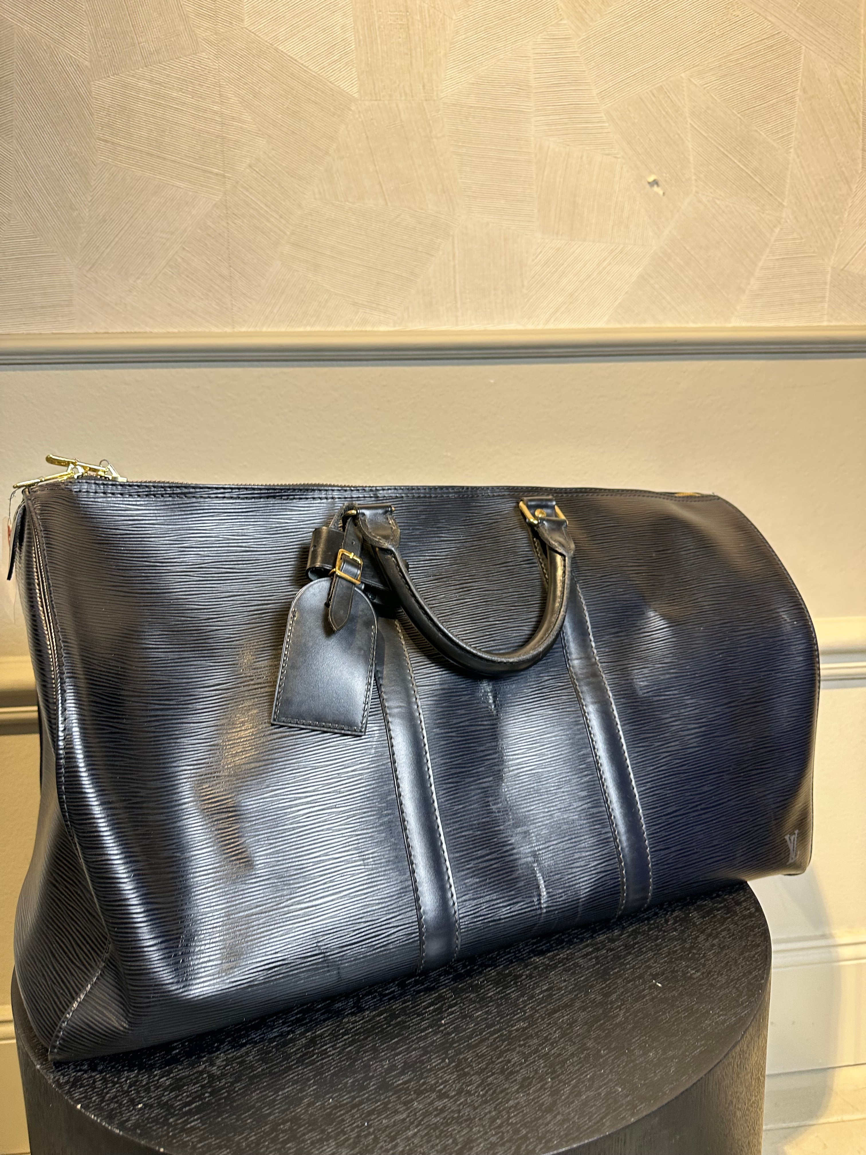 • Louis Vuitton Keepall Epi Leather Black Holdall weekender 43hr bag vintage unique LV monogram detail monochrome