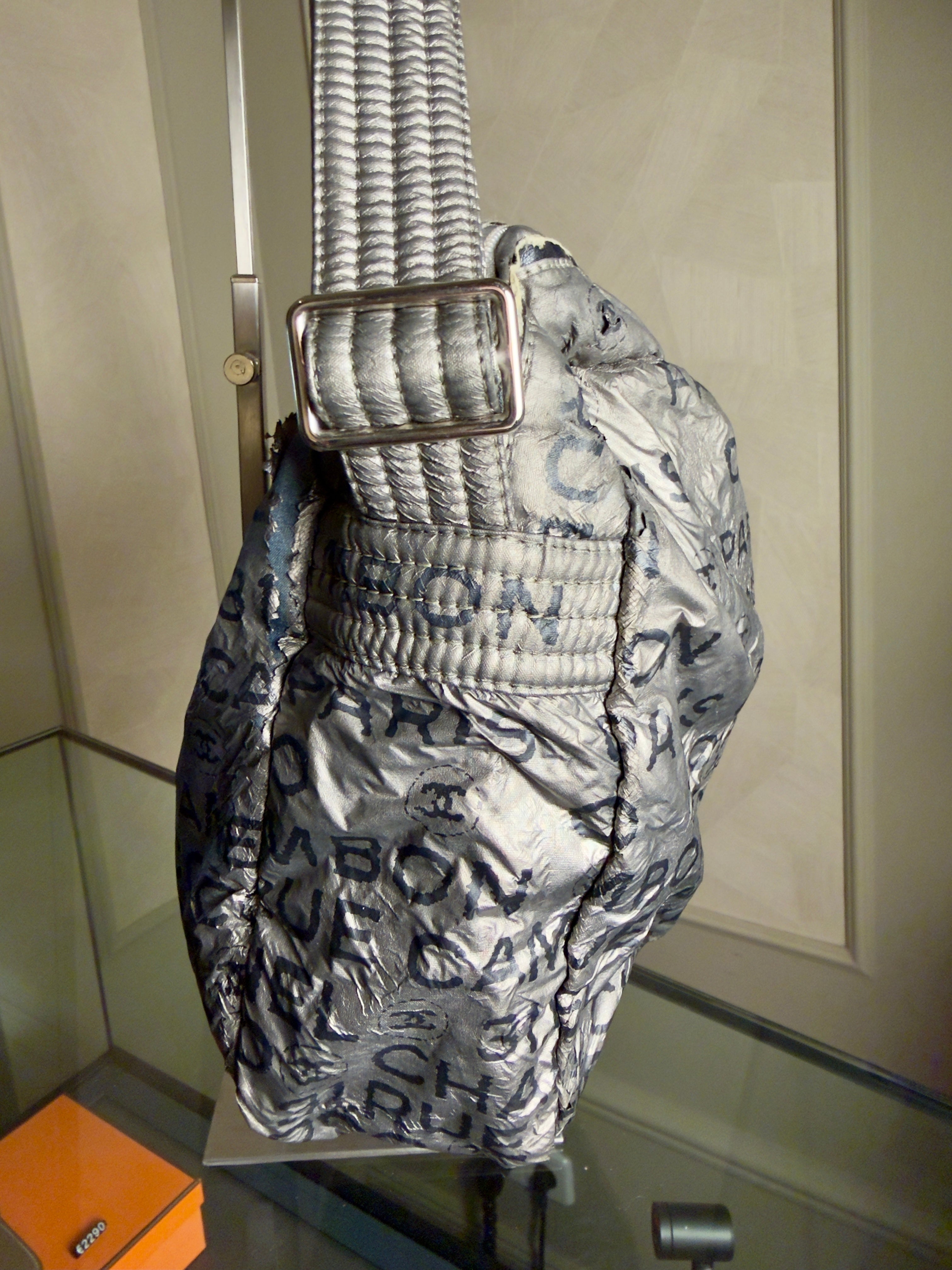 • silver coated nylon with black '31 Rue Cambon' and CC graphics