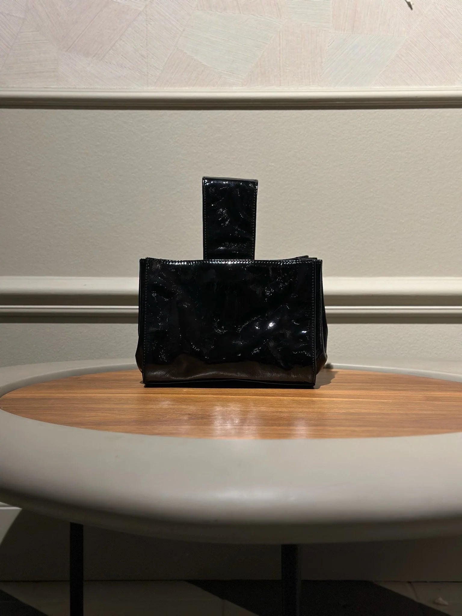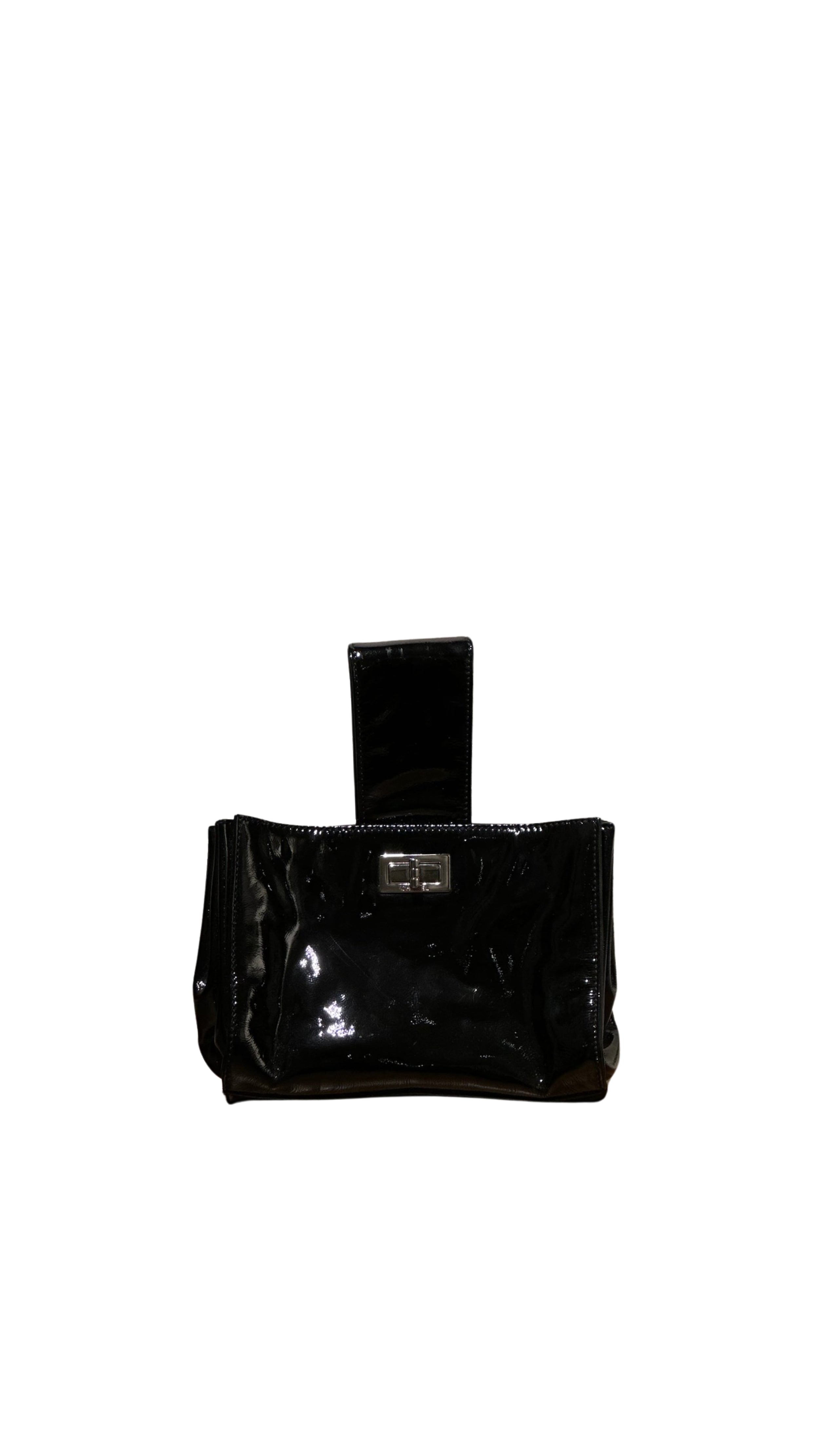 Chanel Clutch Bag - Black Patent Leather with Turn-Lock Closure and Wrist Handle