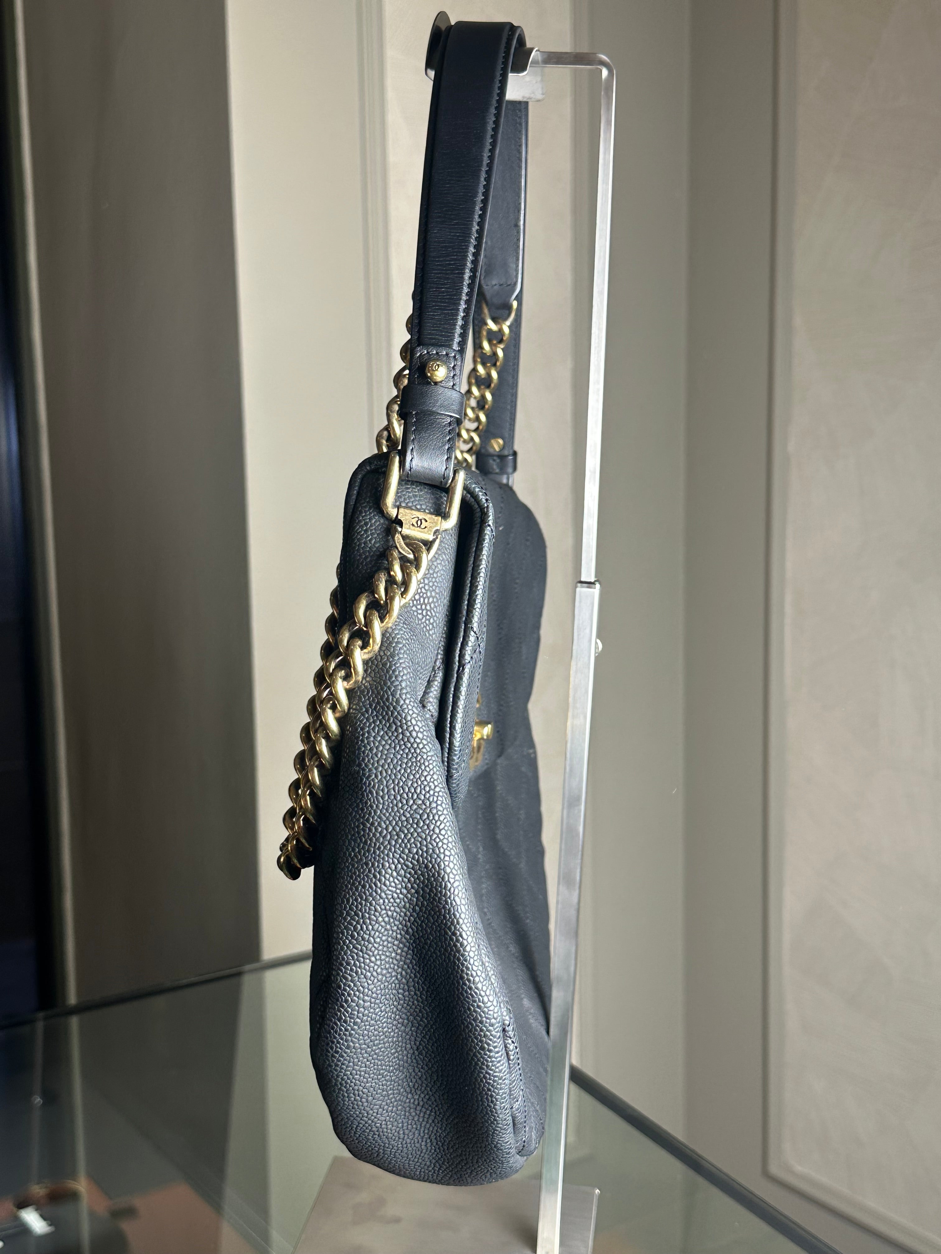 Chanel Country Chic Flap Messenger Bag Quilted Caviar Large 2012/2013 Rare Collectors piece