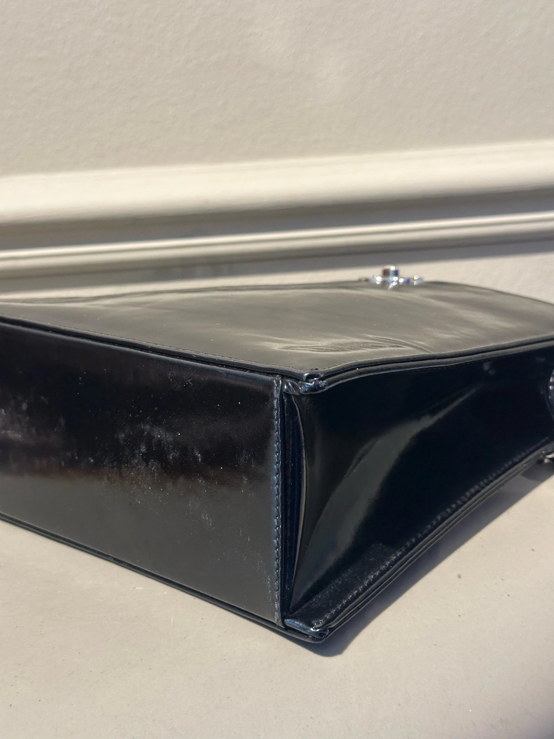 Chanel Vintage Black Patent Shoulder Bag with Silver Hardware