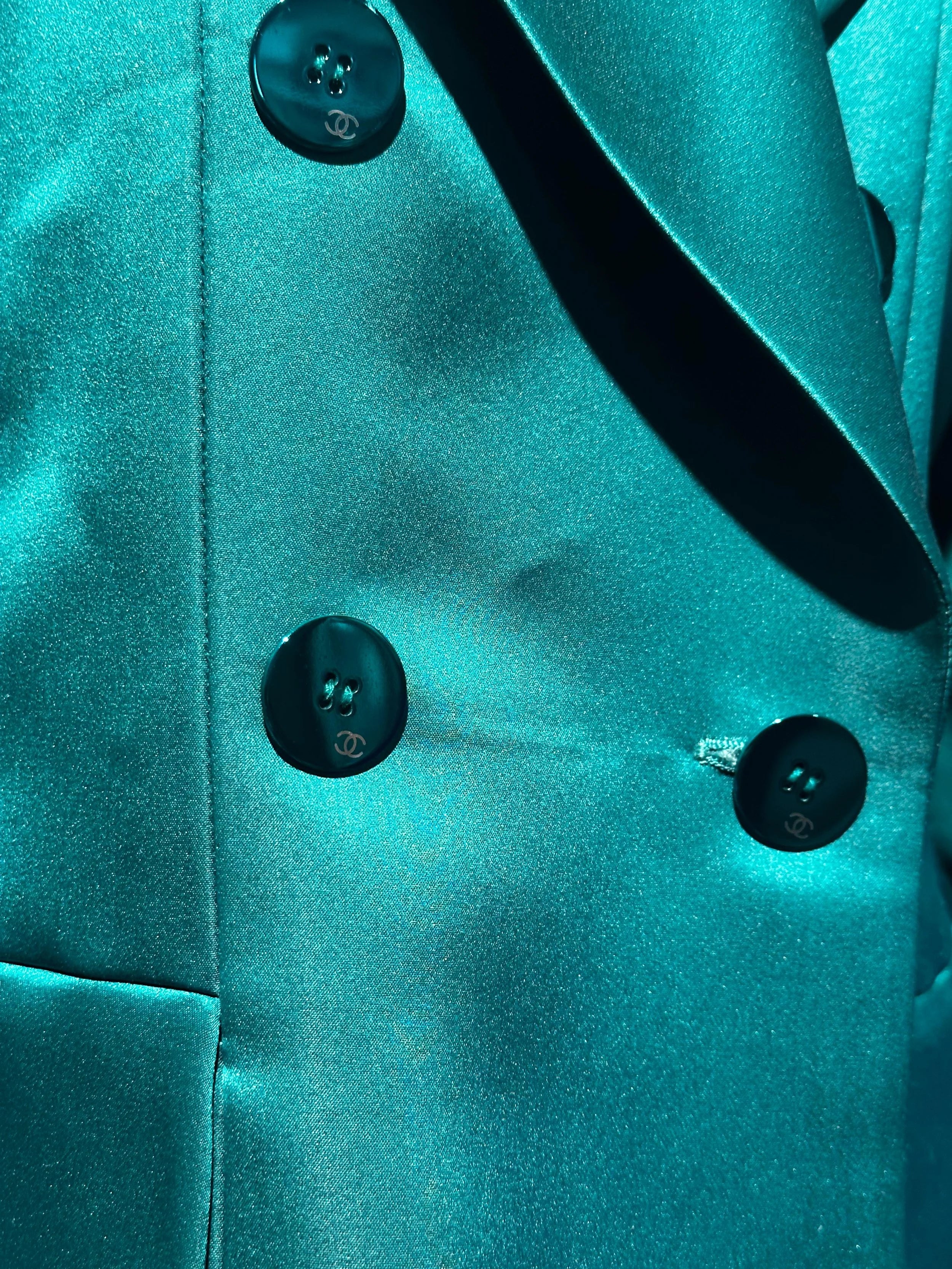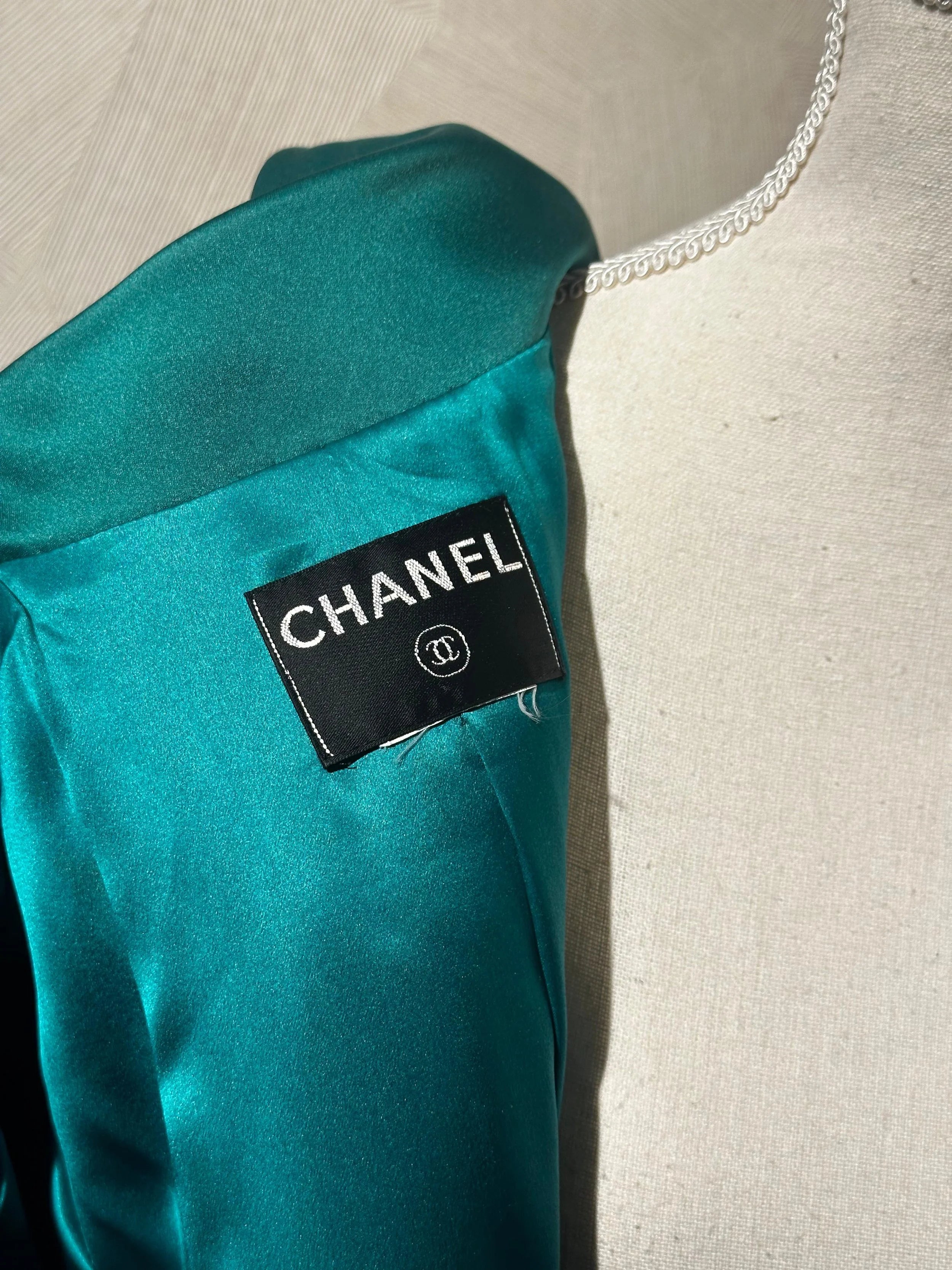 Chanel blazer in emerald green. Size tag has been cut off. Fits an S or small M.