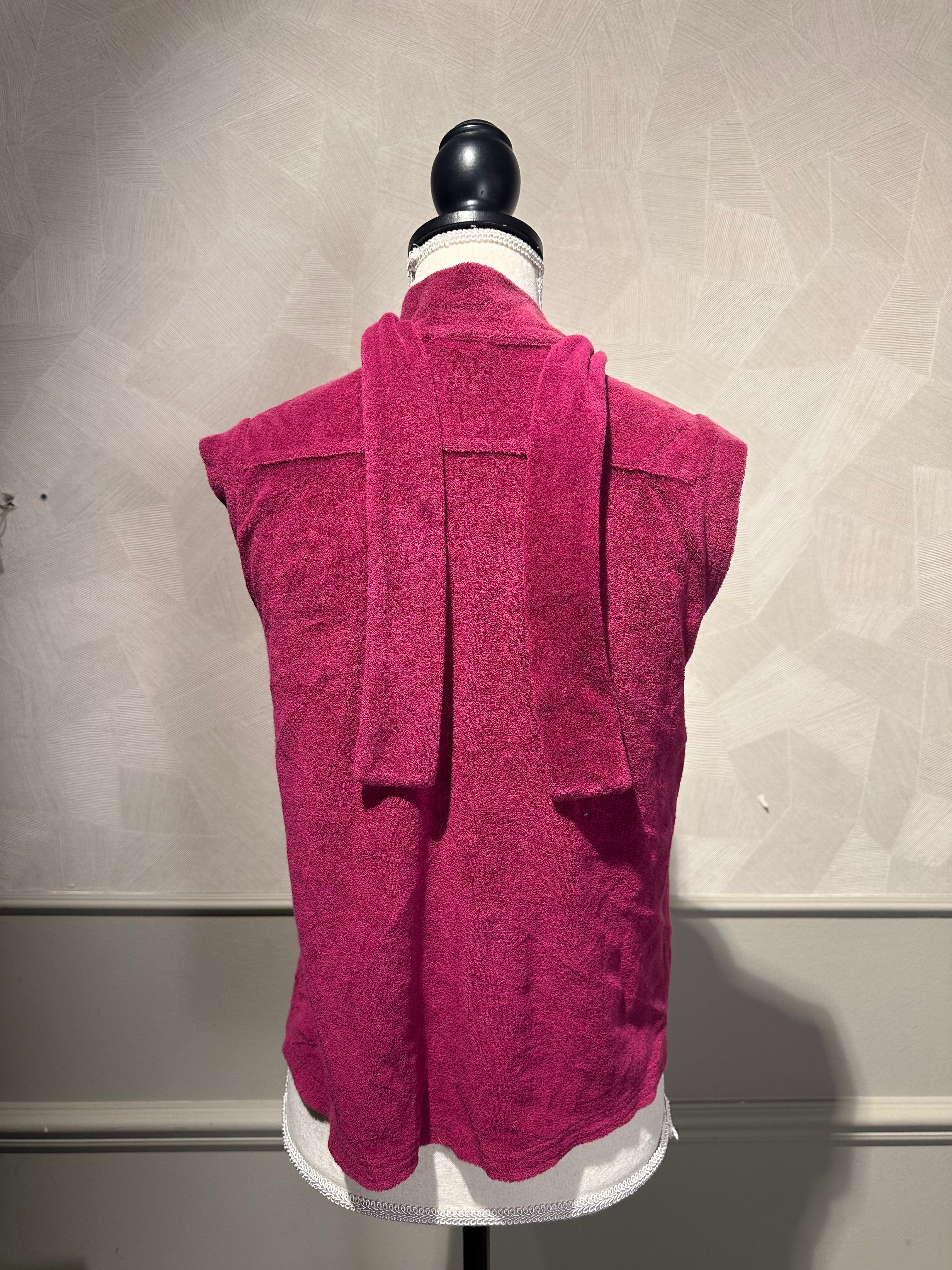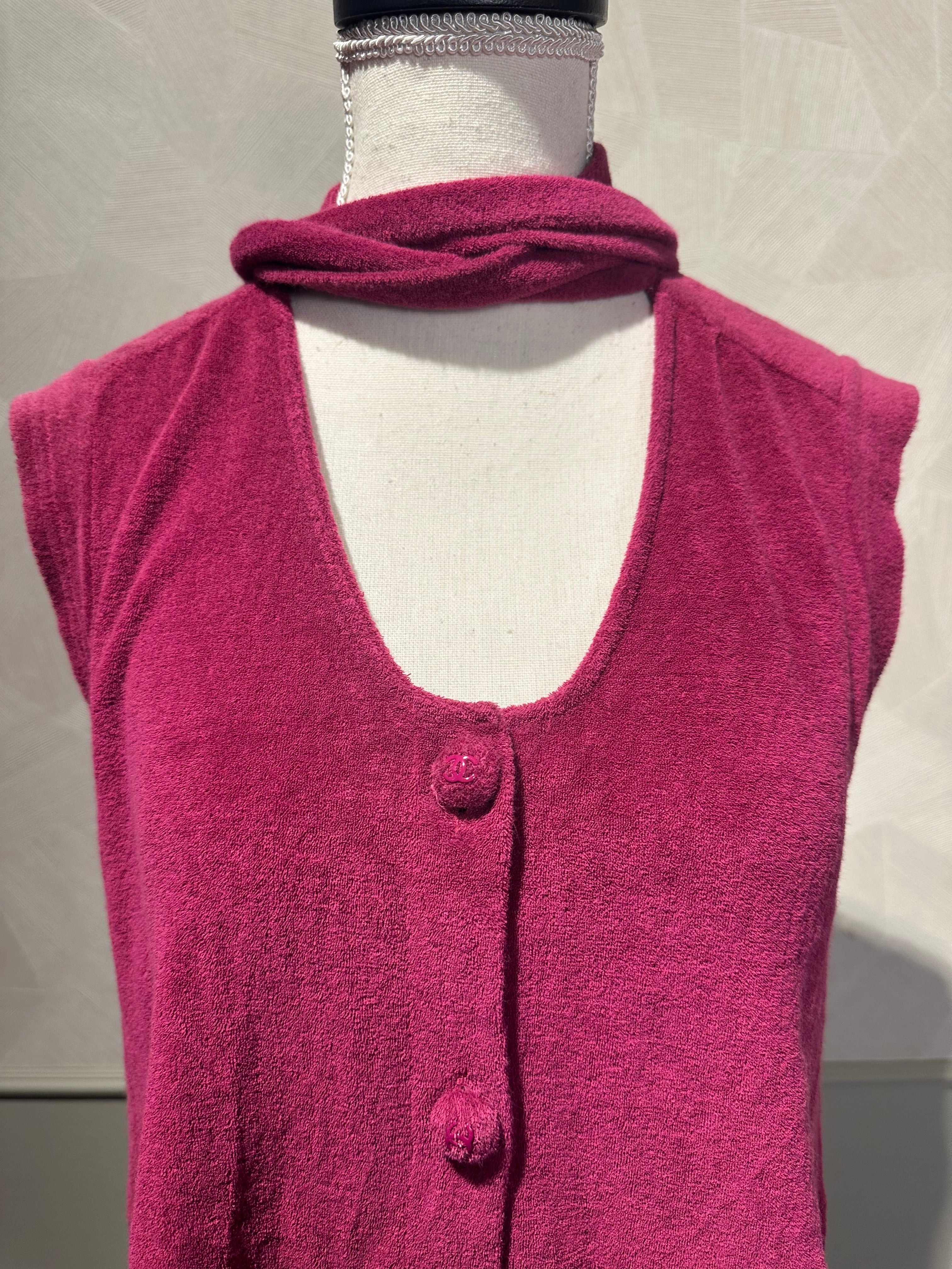 • Chanel fuchsia terrycloth button up vest with matching scarf CC monochrome pink buttons asia exclusive FR36