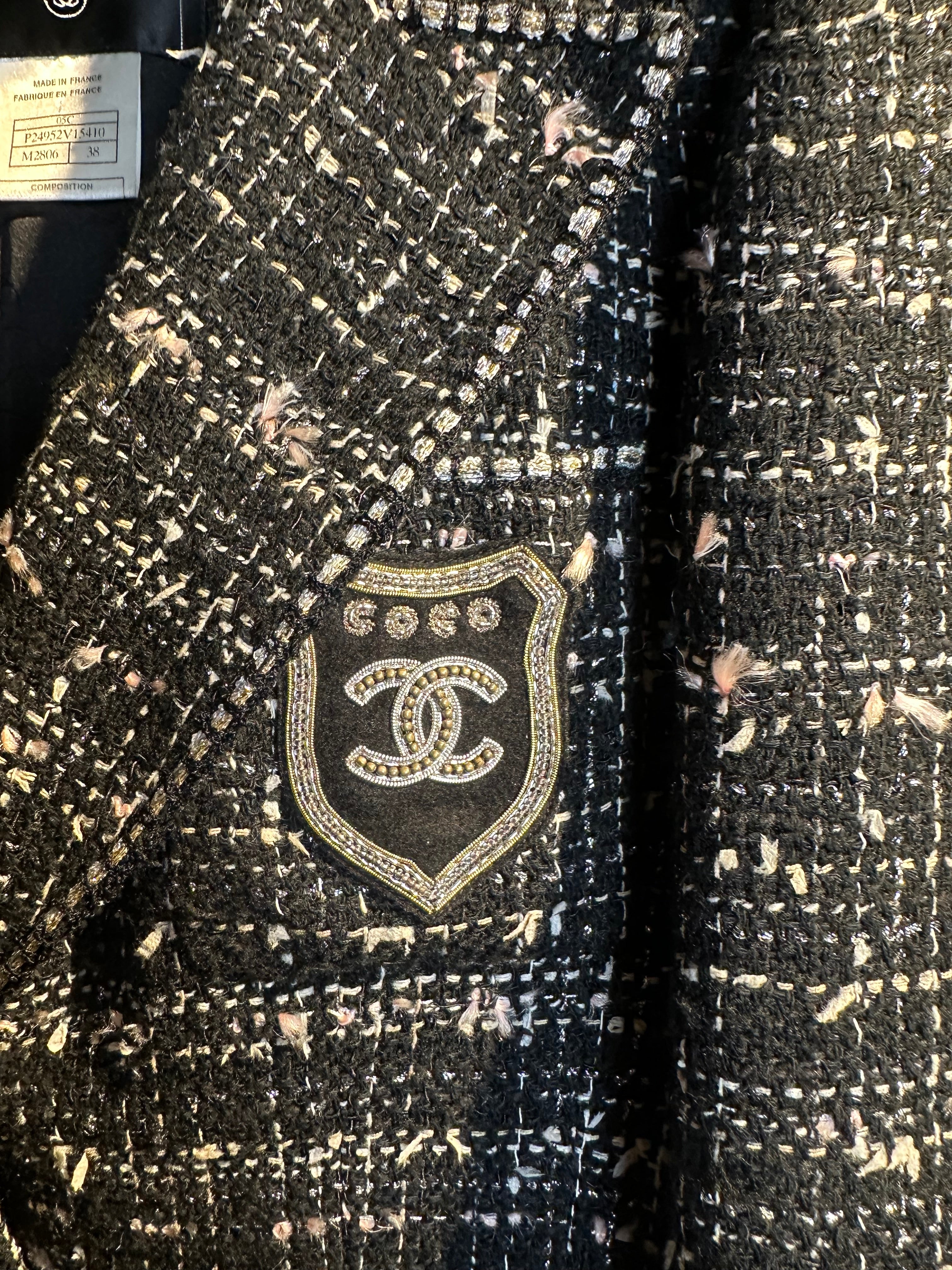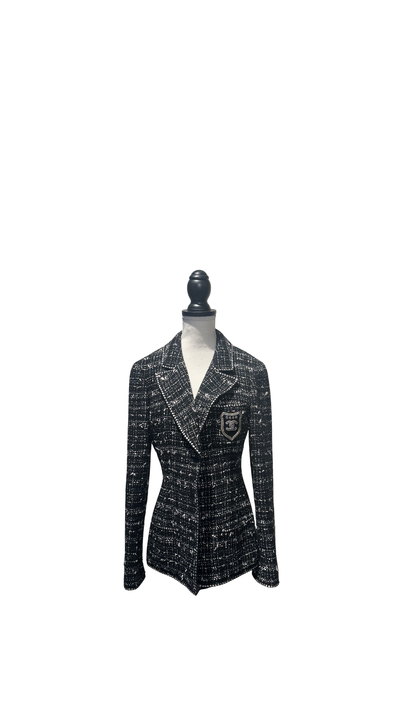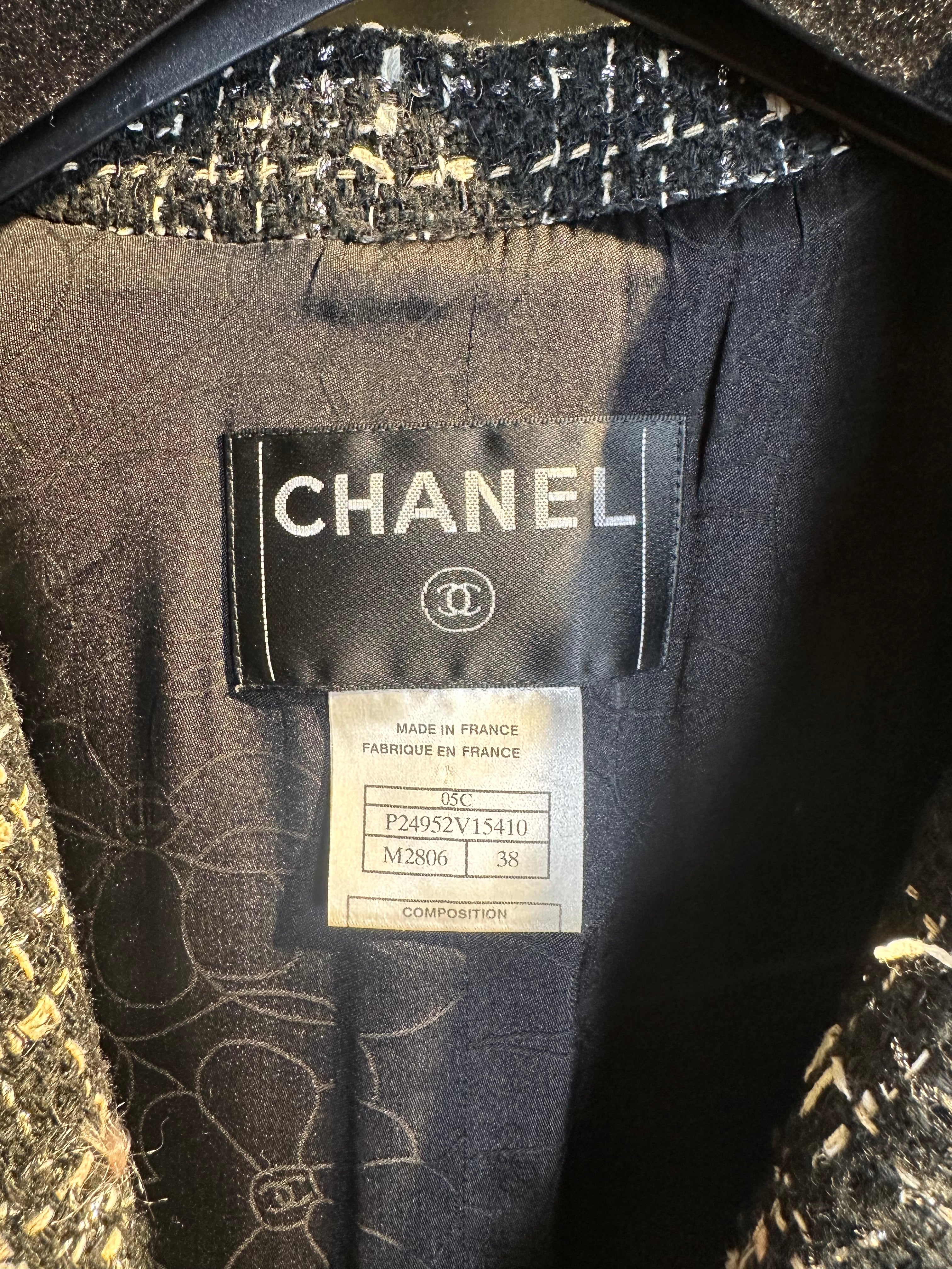 Classic Chanel chain detail Cruise Collection 2005 Tweed Blazer textured grey black long jacket silver hardware FR 46 iconic Devil Wears Prada