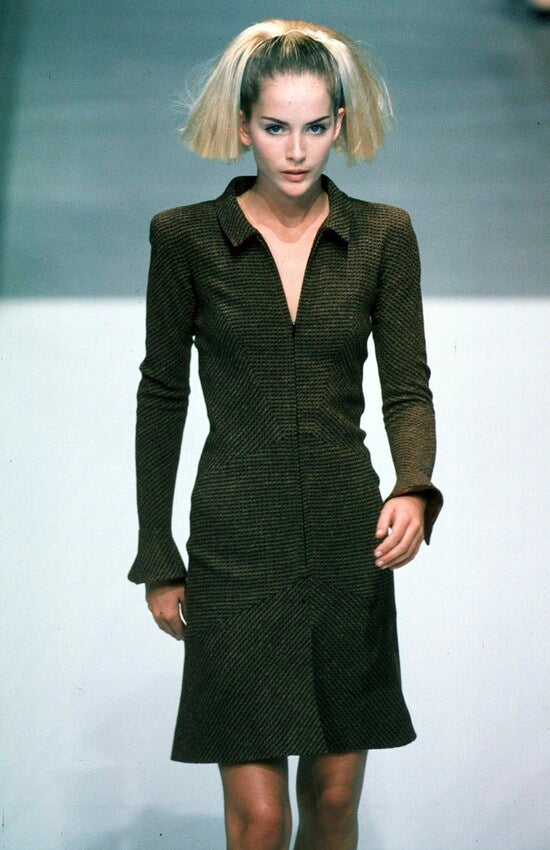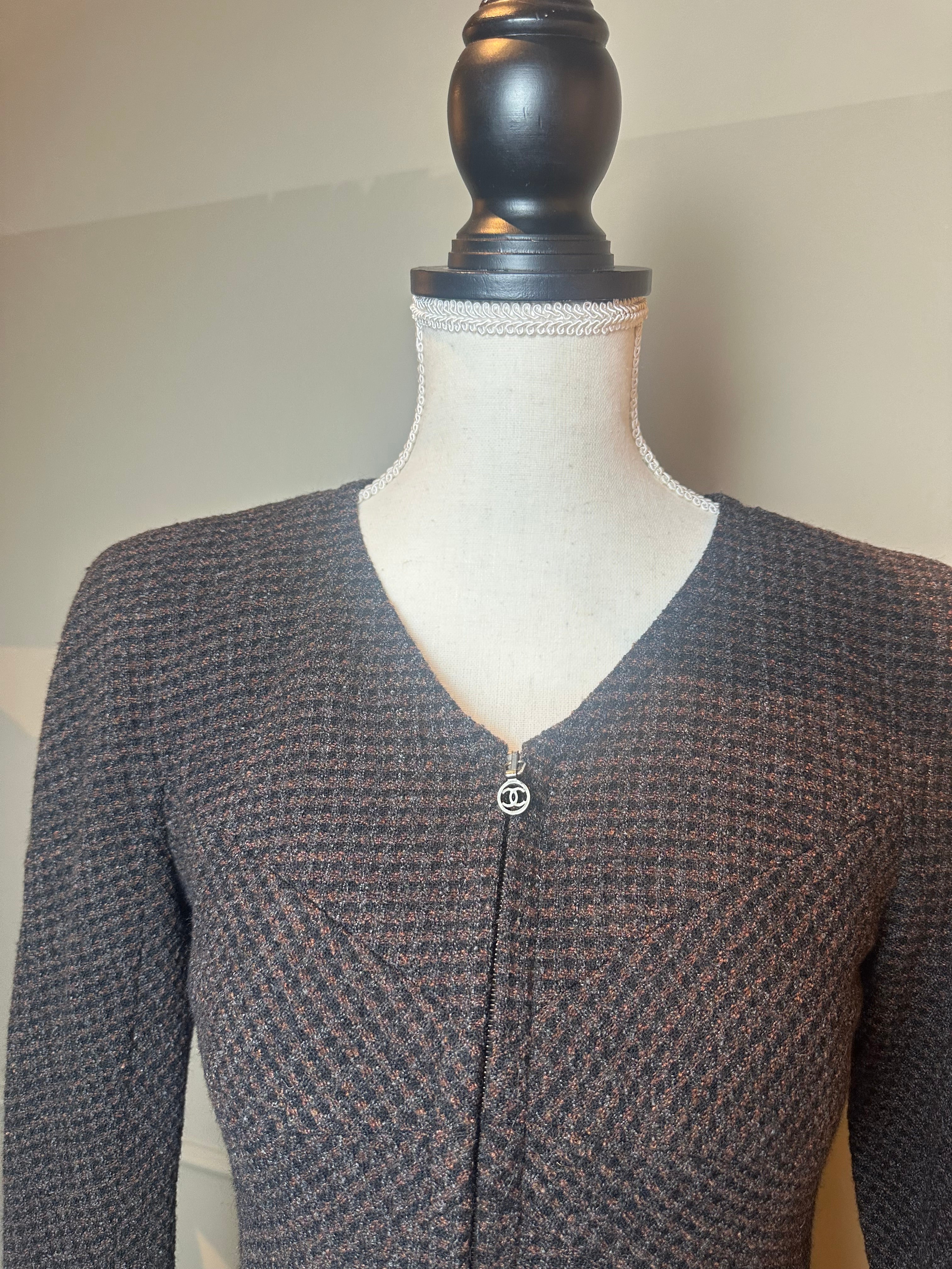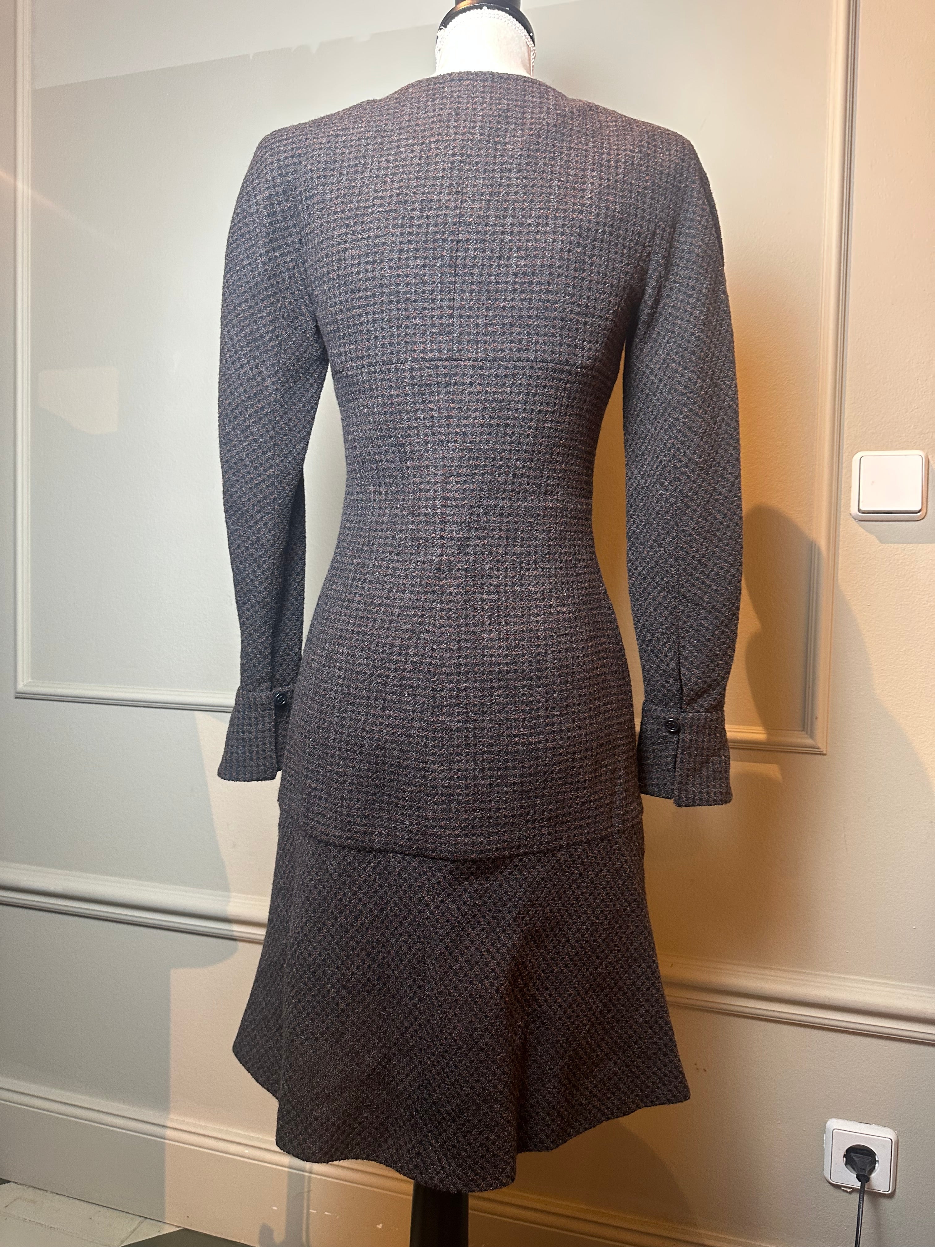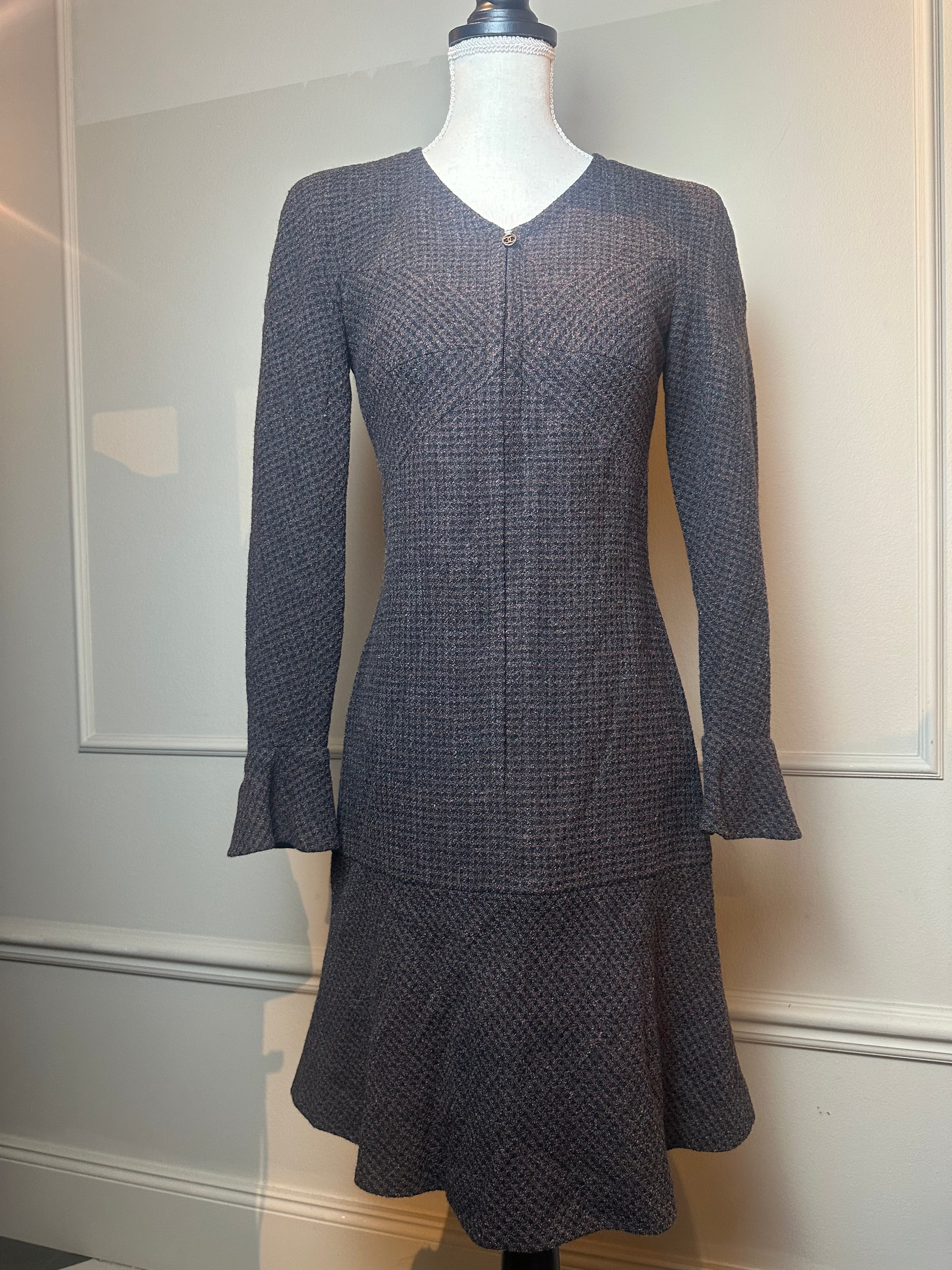 Chanel 1997 Coco Mark Knit Dress Wool Brown CC details FR 34 XS/XXS Long Sleeve Fit Flare Classic