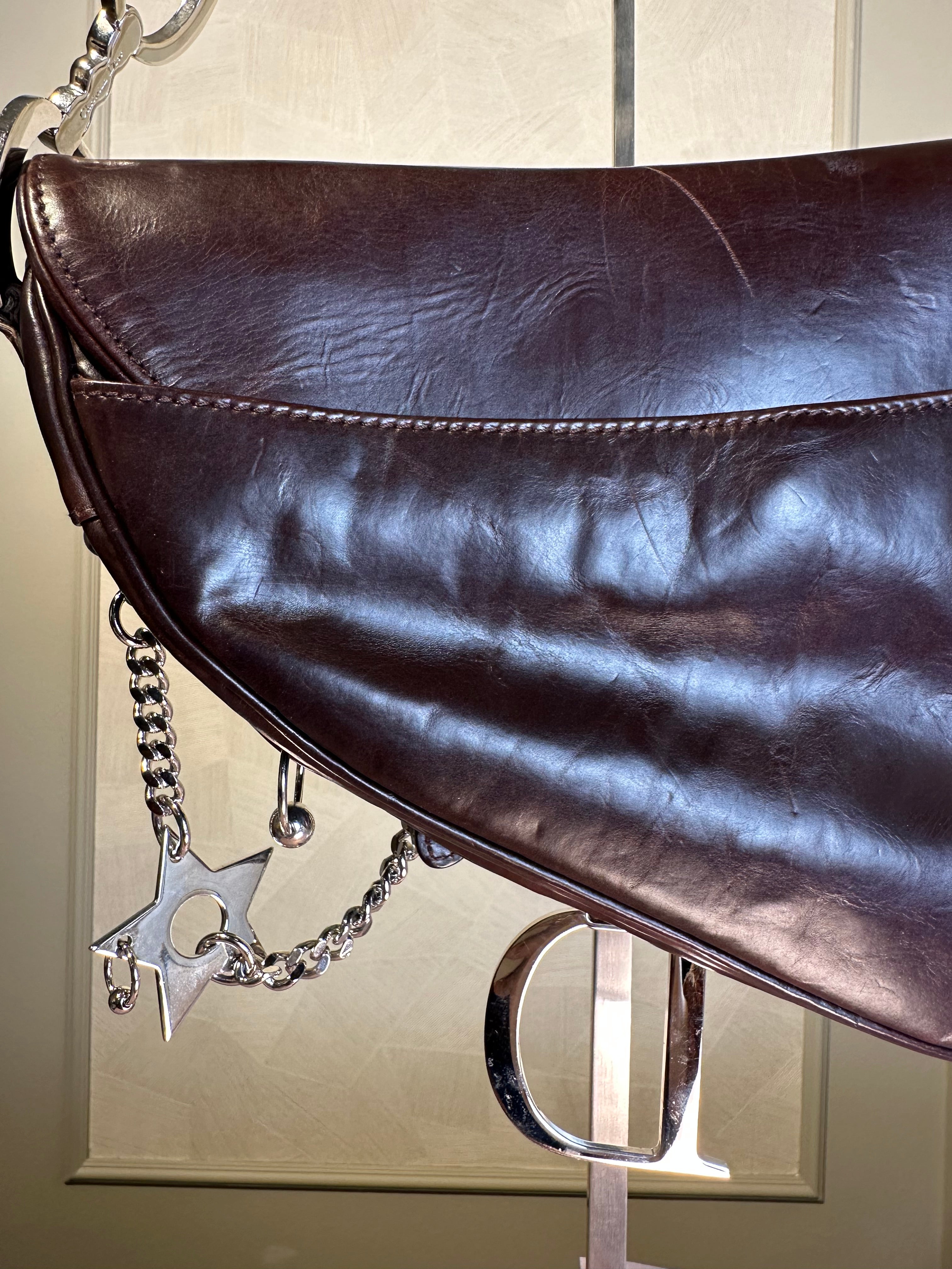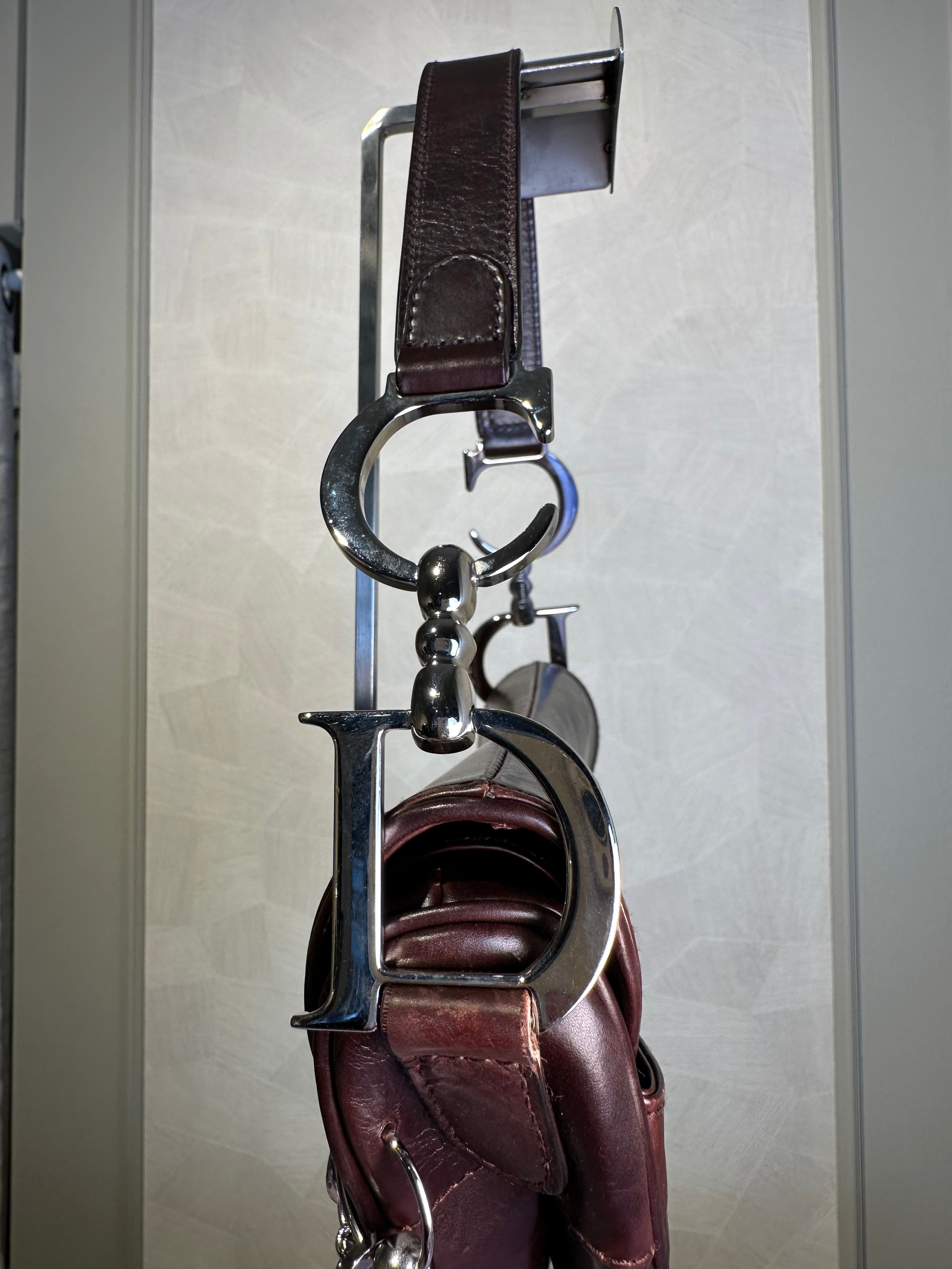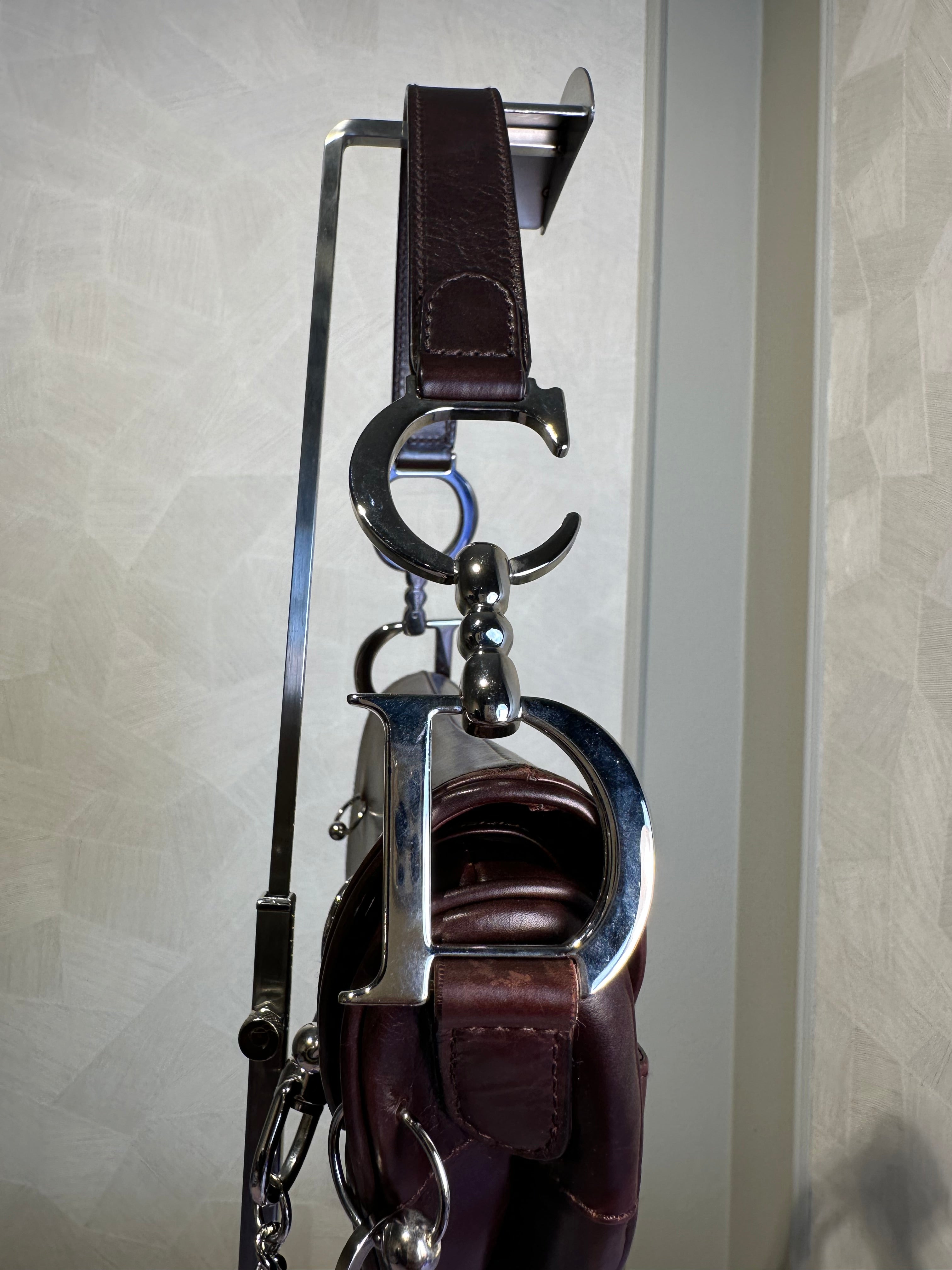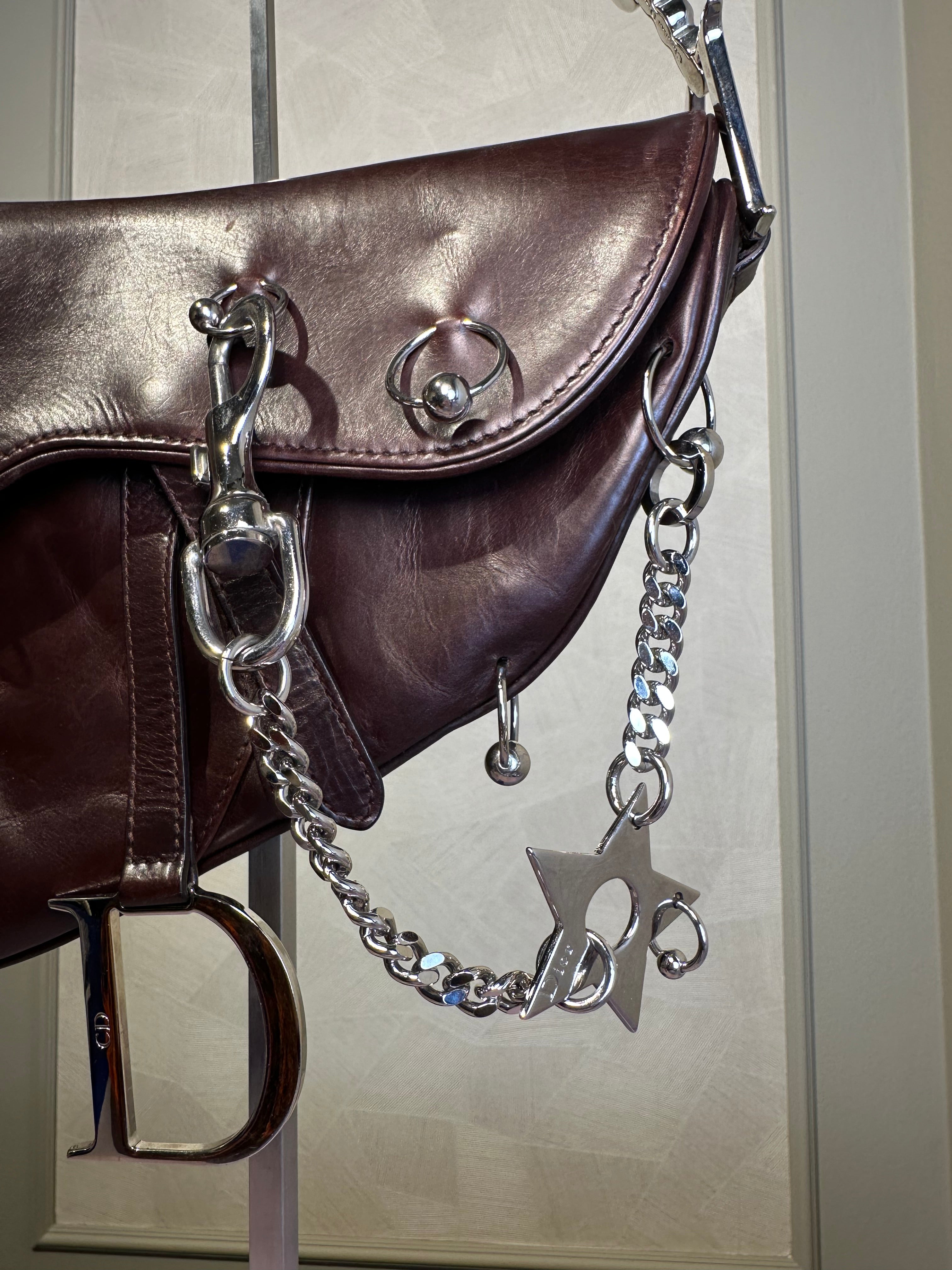 Rare Vintage Christian Dior "Hardcore" piercing limited edition Saddlebag S/S 2004 John Galliano Dark Brown Burgundy