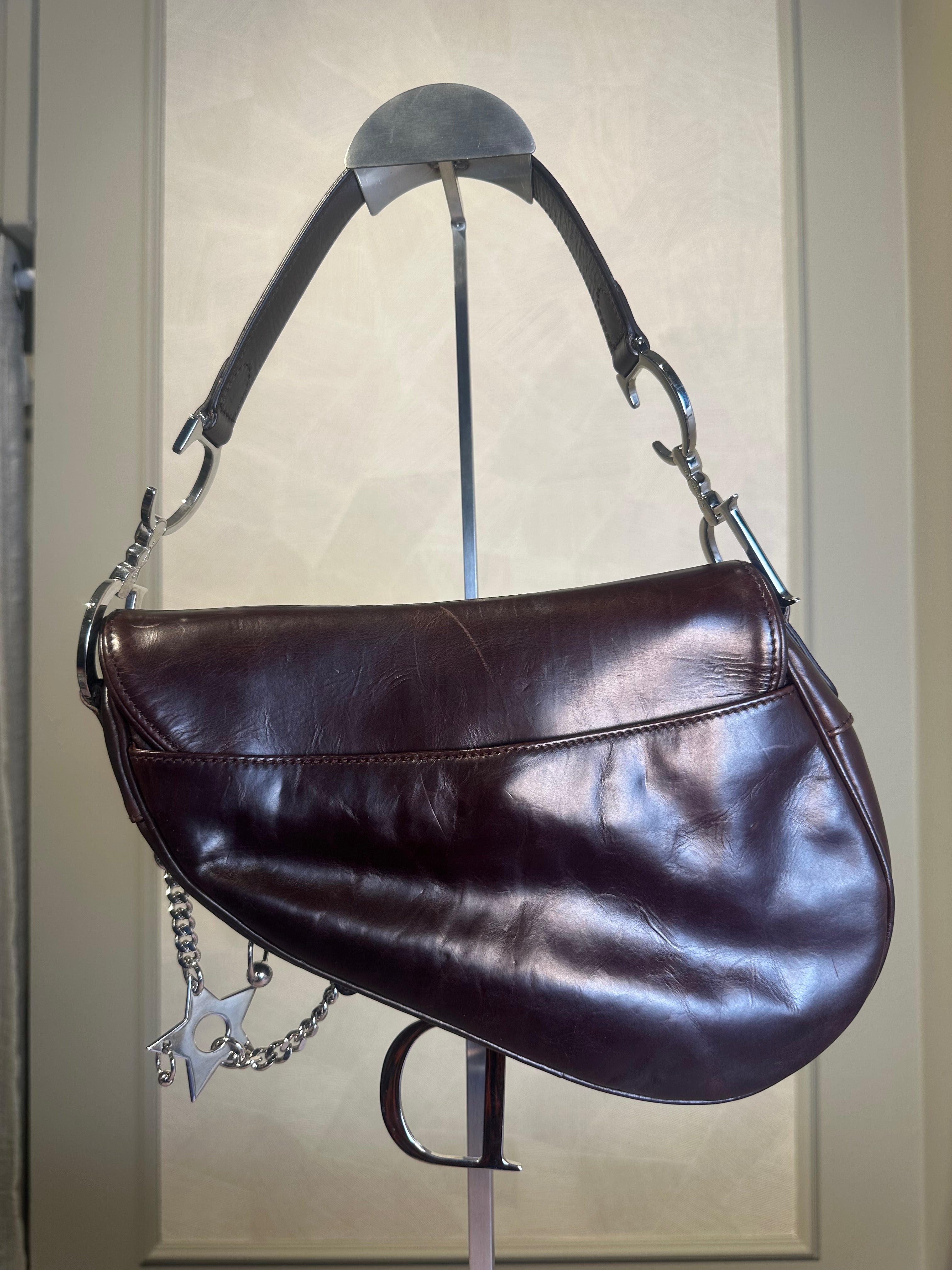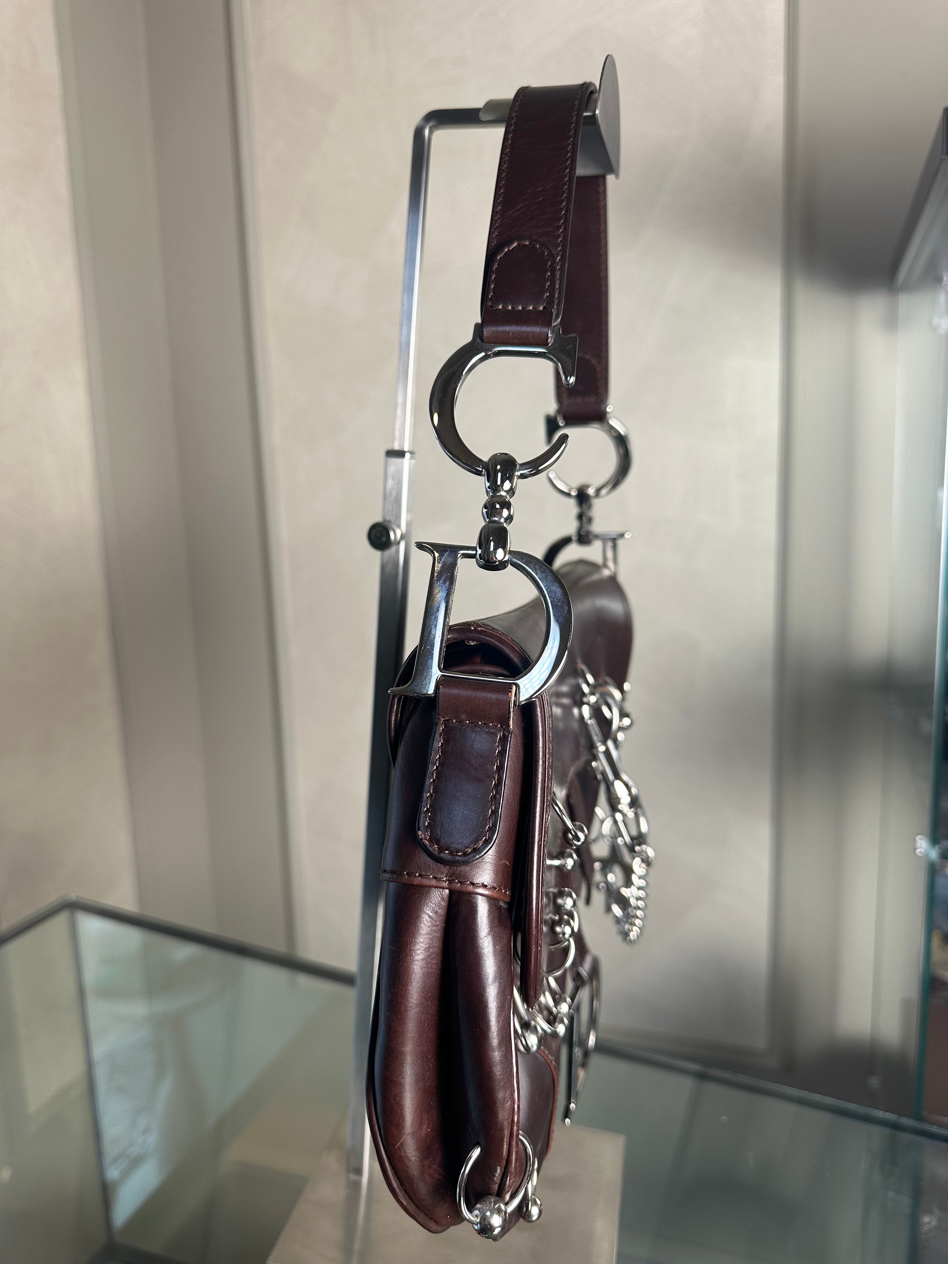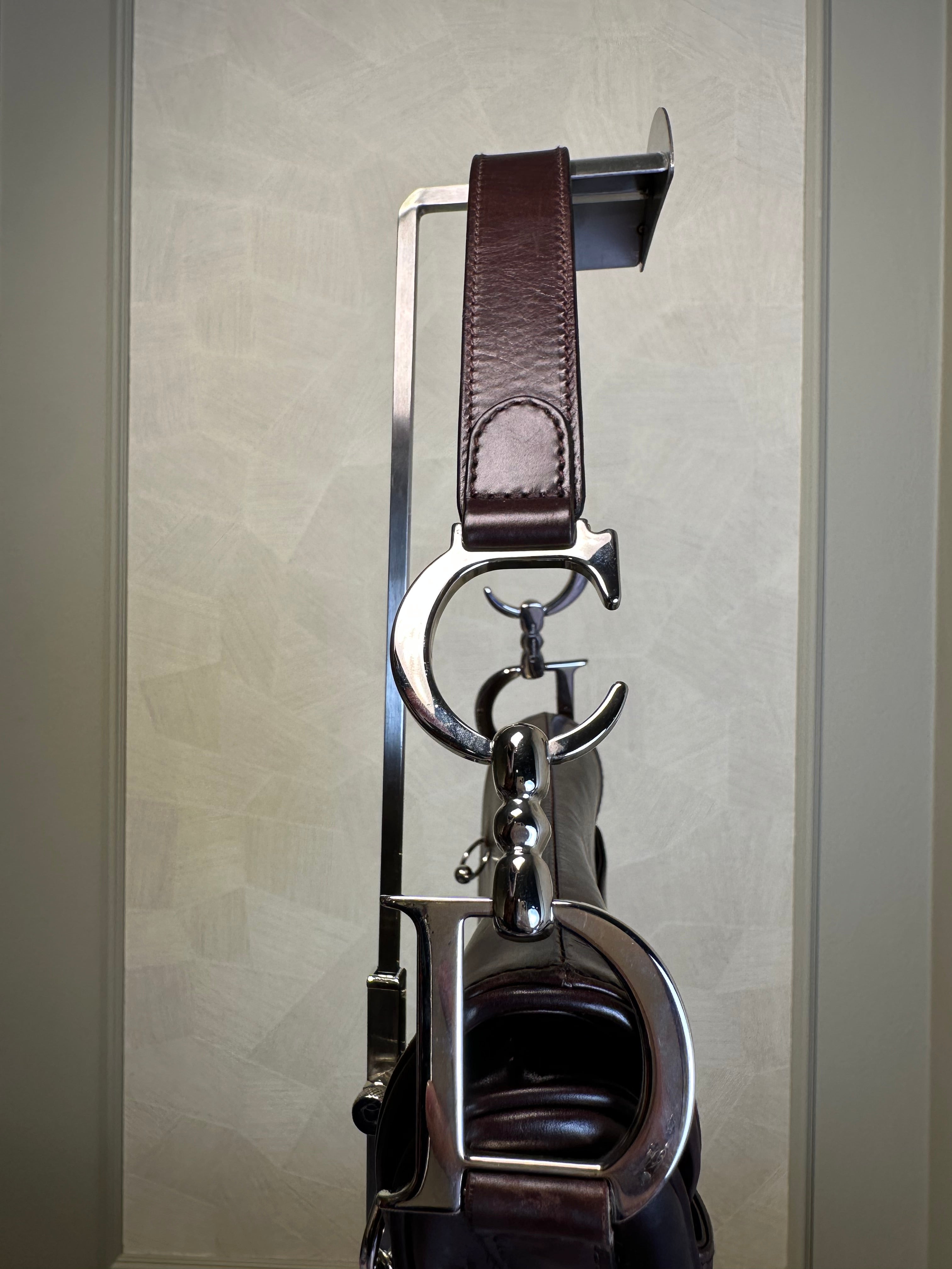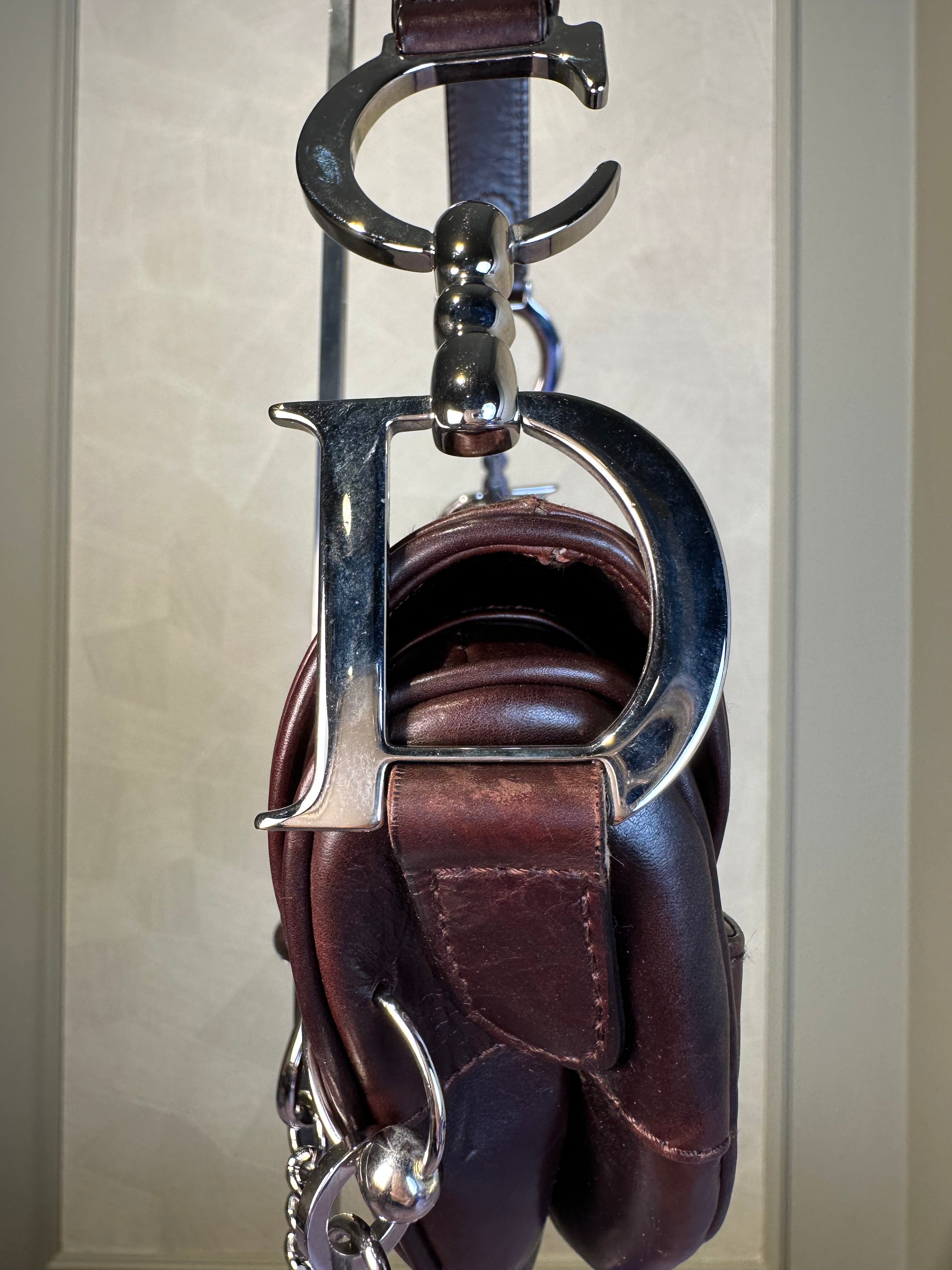 Rare Vintage Christian Dior "Hardcore" piercing limited edition Saddlebag S/S 2004 John Galliano Dark Brown Burgundy