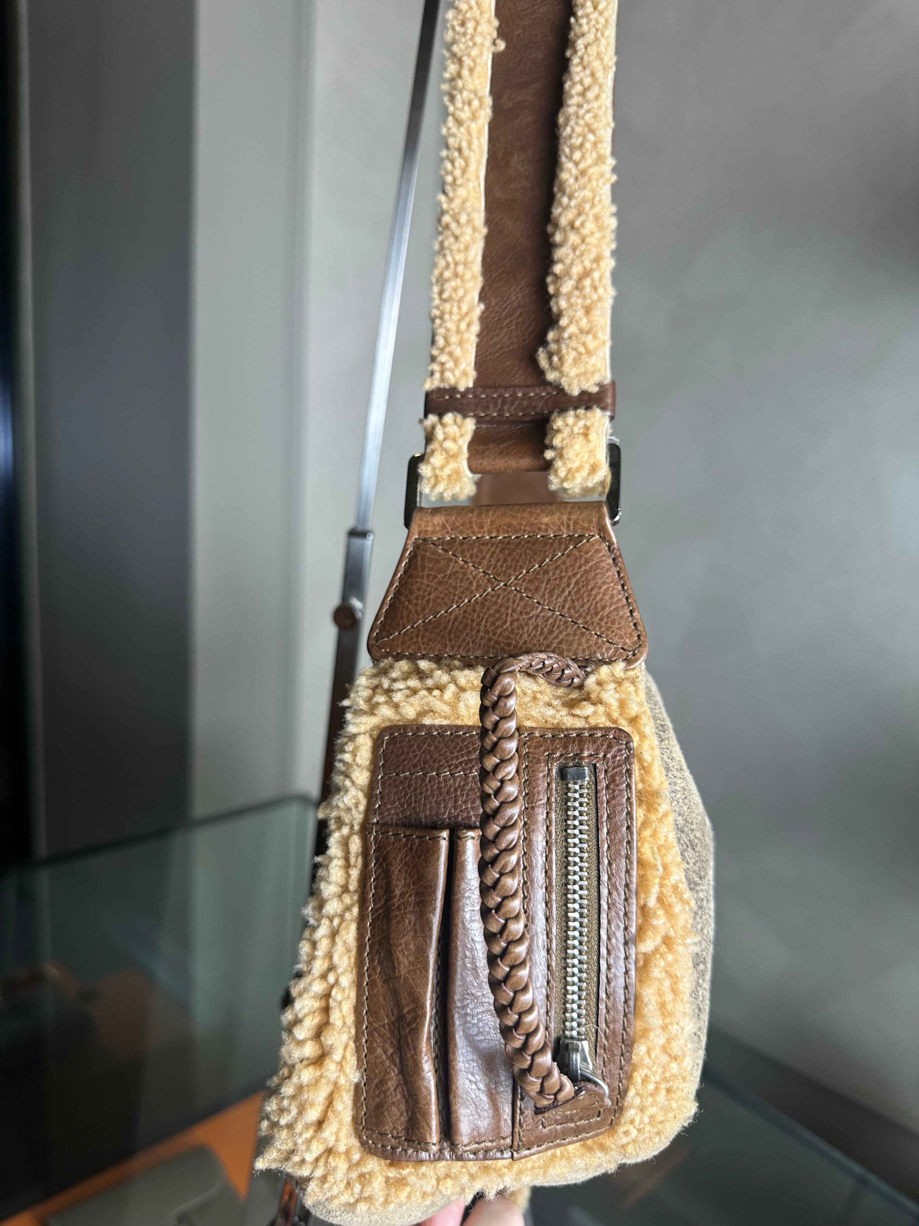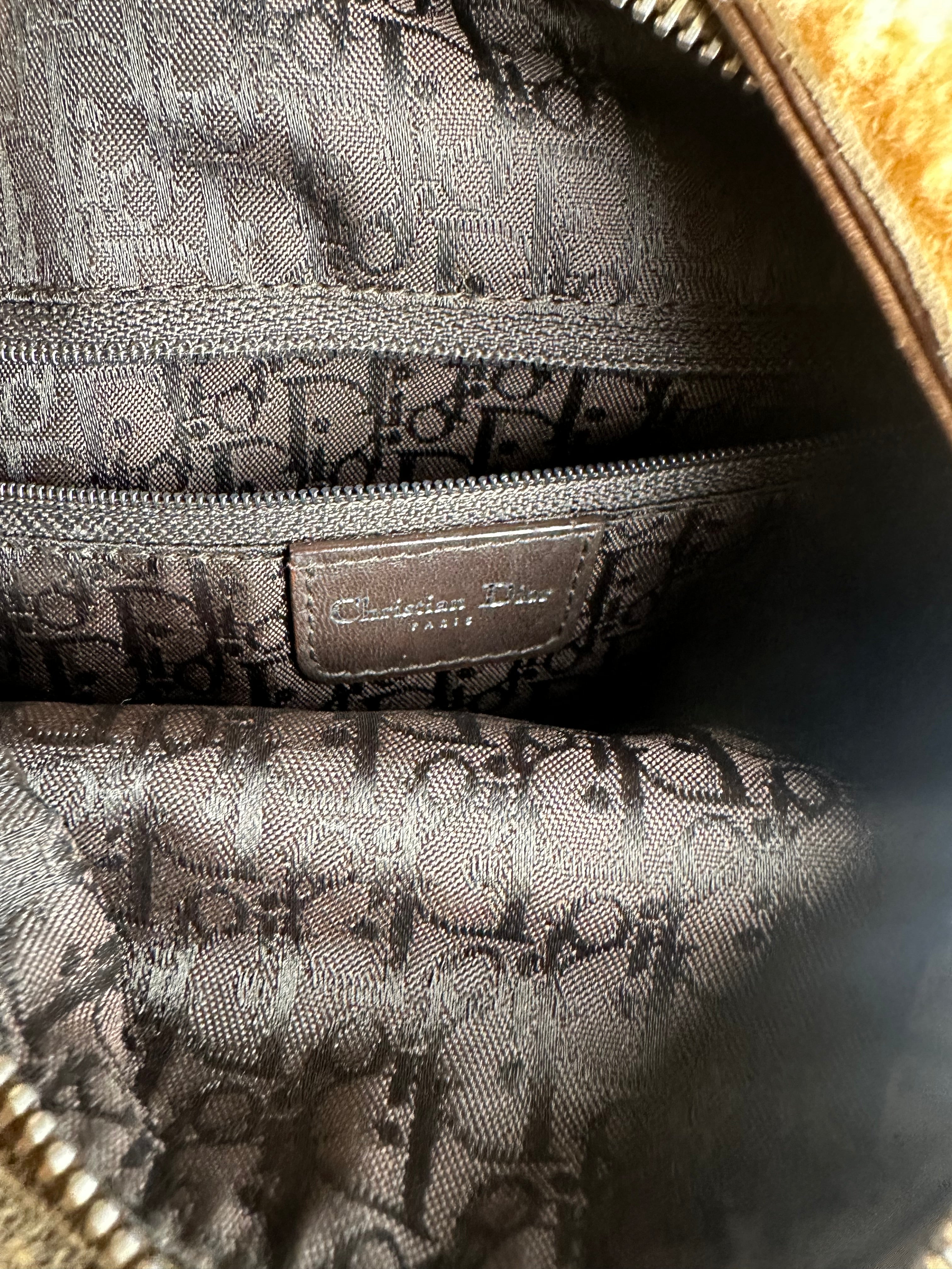 • Christian Dior shearling Flight Columbus Shoulder Bag khaki green brown cream y2k 2005 John Galliano
