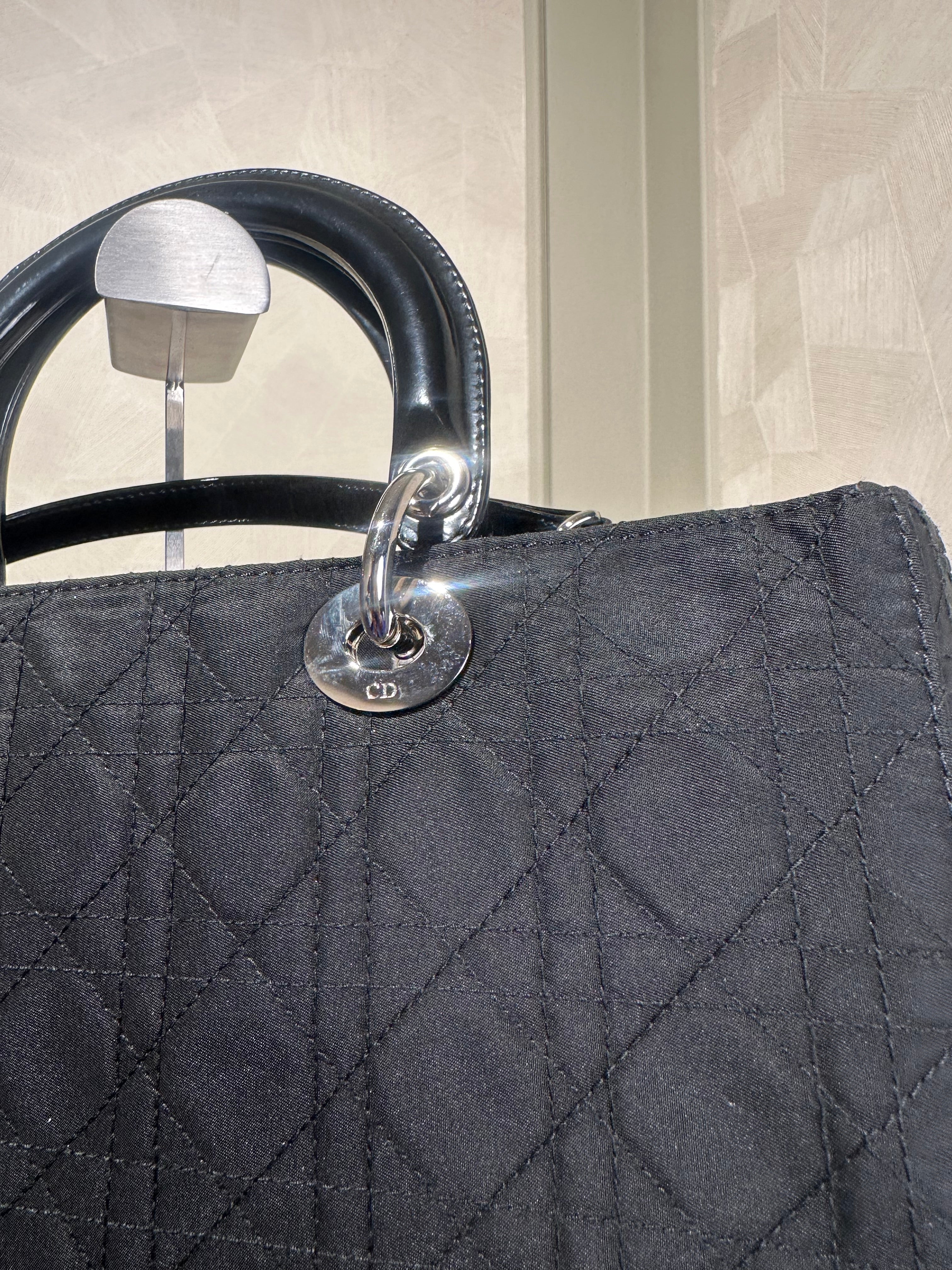 • Lady Dior Bag Black Nylon Silver Hardware Quilted Classic Style Top Handle 2006 Vintage ´DIOR´ keychain