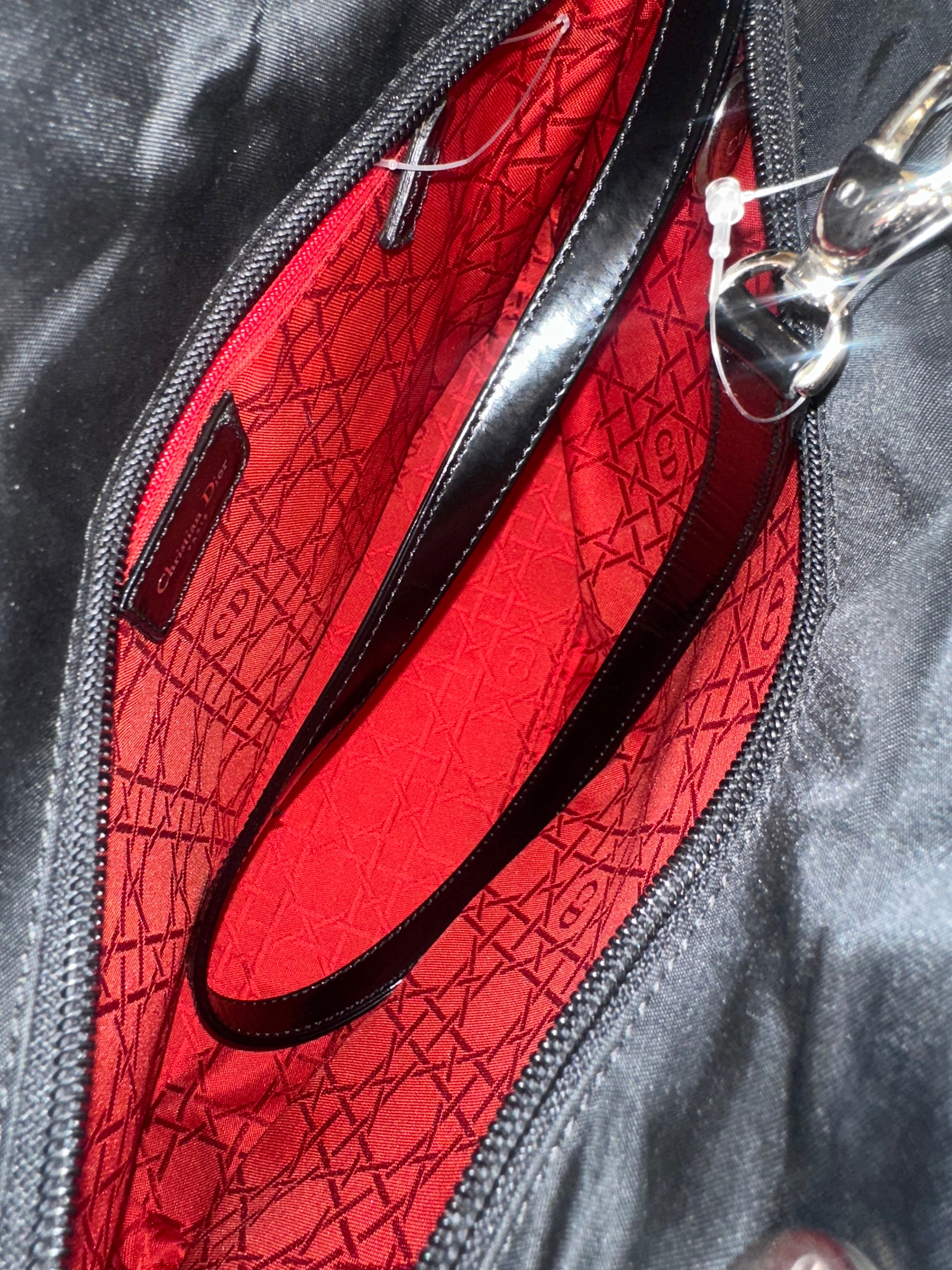 Lady Dior Bag Black Nylon Silver Hardware Quilted Classic Style Top Handle 2006 Vintage ´DIOR´ keychain