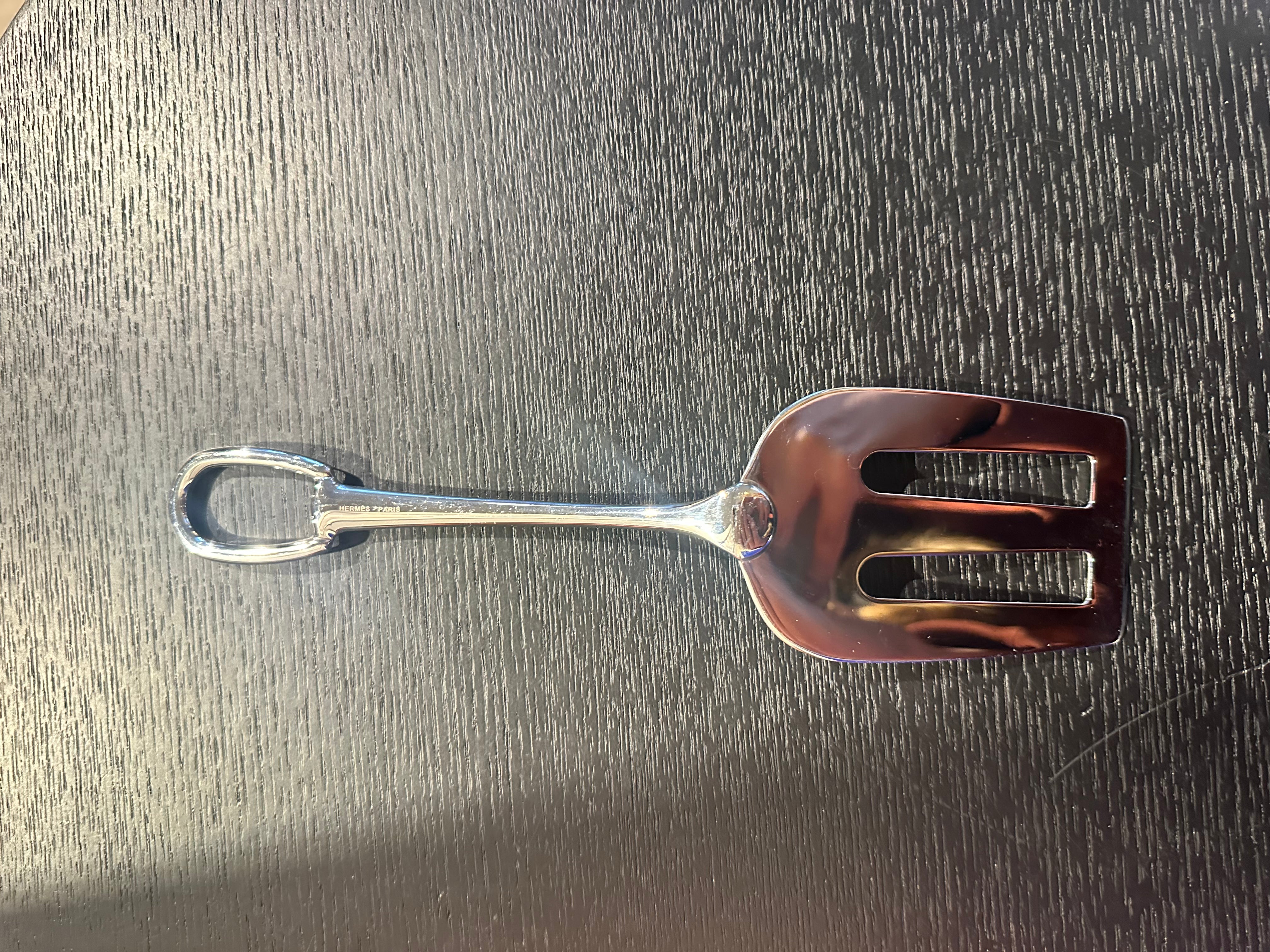 Hermes Attelage silver pie/cake server silver plarted metal saddle key inspired multi-horse horsebit detailing